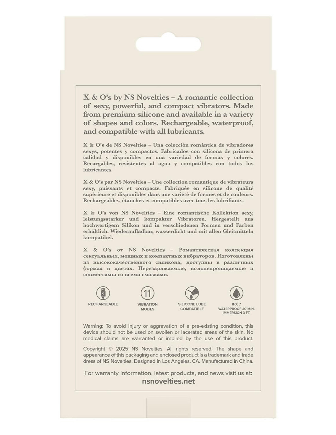 X & O's by NS Novelties: a romantic collection of sexy, powerful and compact vibrators. Made from premium silicone and available in a variety of shapes and colours. Rechargeable, waterproof, compatible with all lubricants.Compact vibrator11 Vibration modesRechargeableIPX 7 waterproofCompatible with all lubricantsCharger type: USB-PinCharge time: 90 minutesRun time: 50 minutes
