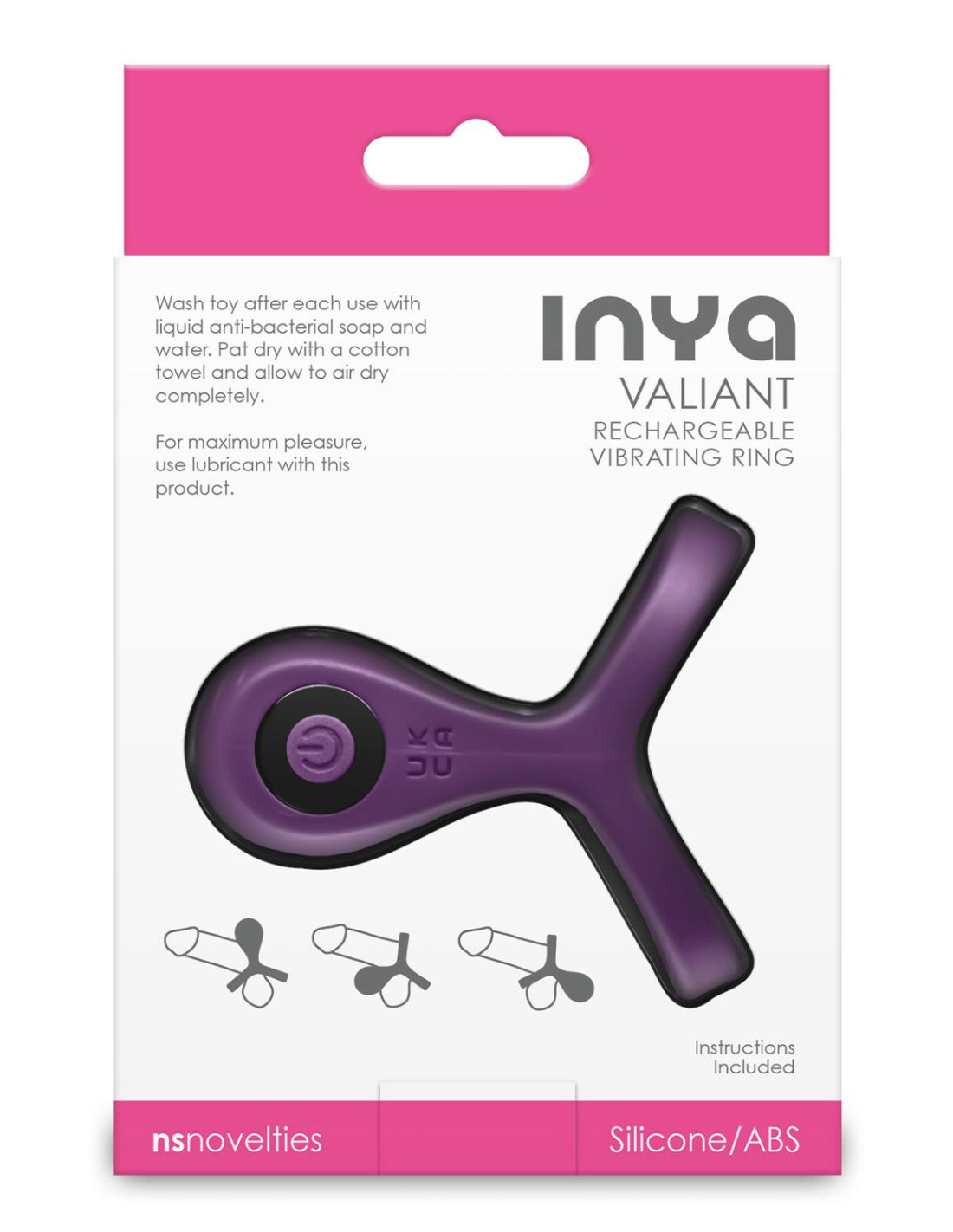 Valiant by INYA – Prolong pleasure and enhance performance with the Valiant cock & ball ring that fits snugly and delivers powerful vibrations. Made from body-safe silicone, Valiant is rechargeable, water resistant, and suitable with all lubricants. Enhance your performance and prolong pleasure with INYA Valiant, a cock & ball ring designed to provide a snug fit while delivering powerful vibrations. This innovative ring stimulates both partners, intensifying sensations and promoting endurance. Featuring 3 speeds and 7 functions, Valiant is made from body-safe silicone, rechargeable, and water-resistant, making it a durable and pleasurable addition to any intimate experience. Designed to support sexual wellness and confidence, this ring helps you explore new levels of pleasure in a safe and enjoyable way. Compatible with all lubricants, Valiant ensures a comfortable, stimulating fit for enhanced intimacy.Snug fit for intense vibrations3 speeds & 7 vibration functionsRechargeableEnhances performance & enduranceBody-safe silicone for comfortWater resistantSuitable with all lubricantsProduct dimensions: 2.83 x 1.81 x 2.56 inches / 7,2 x 4,6 x 6,5 cmProduct material: siliconeCharger type: USB-PinCharge time: 60 minutesRun time: 40 minutes