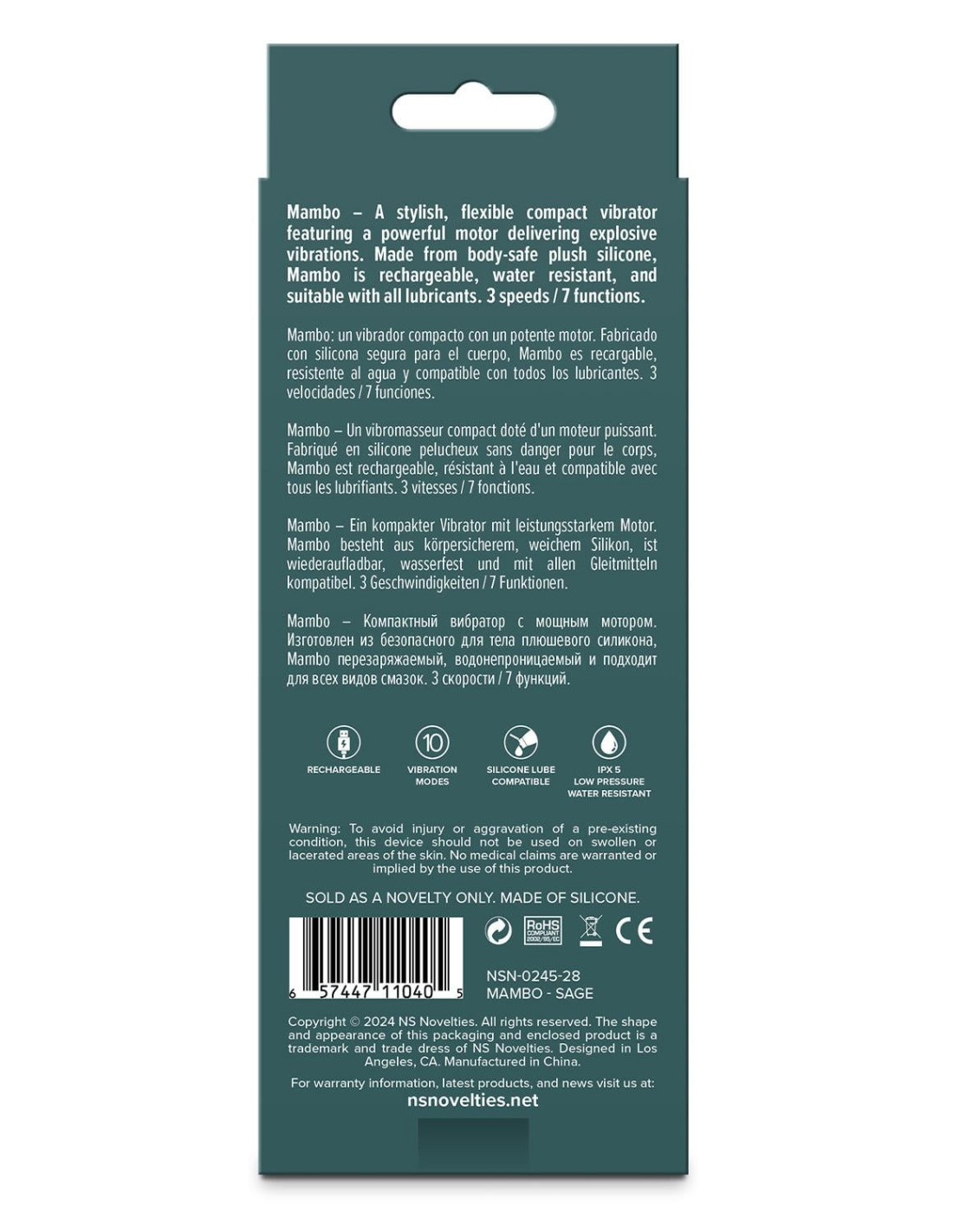 Mambo – A stylish, flexible compact vibrator featuring a powerful motor delivering explosive vibrations. Made from body-safe plush silicone, Mambo is rechargeable, water resistant, and suitable with all lubricants.Let your pleasure take the lead with Lust-n-Dreams Mambo, a stylish, flexible compact vibrator designed for explosive vibrations and maximum pleasure. Featuring a powerful motor with 3 speeds and 7 functions, Mambo is perfect for targeted stimulation and full-body exploration. Made from plush, body-safe silicone, this rechargeable and water-resistant vibrator ensures both comfort and satisfaction. Compatible with all lubricants, Mambo enhances sexual wellness by encouraging self-love, confidence, and intimate discovery, making it an essential addition to any pleasure routine.Compact vibrator with 3 speeds7 functions for targeted pleasureProduct dimensions: 4.8 x 1.06 x 1.06 inches / 12,2 x 2,7 x 2,7 cmInsertable dimensions: 4.8 x 1.06 inches / 12,2 x 2,7 cmProduct material: siliconeCharger type: USB-PinCharge time: 80 minutesRun time: 65 minutes
