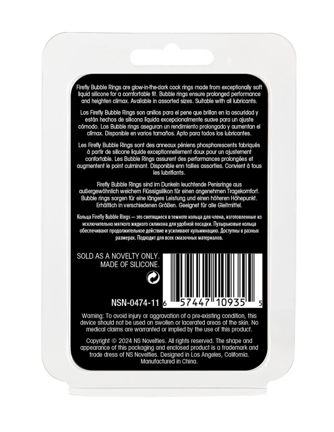 Firefly Bubble Rings are glow-in-the-dark cock rings made from exceptionally soft liquid silicone for a comfortable fit. Bubble rings ensure prolonged performance and heighten climax. Available in assorted sizes. Suitable with all lubricants.Experience intensified pleasure with the Firefly Bubble Ring, a glow-in-the-dark cock ring crafted from ultra-soft liquid silicone for an incredibly comfortable fit. Designed to enhance performance and prolong pleasure, this ring is available in assorted sizes, making it a perfect choice for everyone. Whether you're enjoying solo play or intimate moments with a partner, this ring is compatible with all lubricants, ensuring a smooth and sensational experience.Glow in the dark penis ringSize SGlow-in-the-dark featureUltra-soft liquid siliconeEnhances performance and pleasureCompatible with all lubricantsDimensions: 1.57 x 1.57 x 0.43 inch / 4 x 4 x 1,1 cmMaterial: Silicone