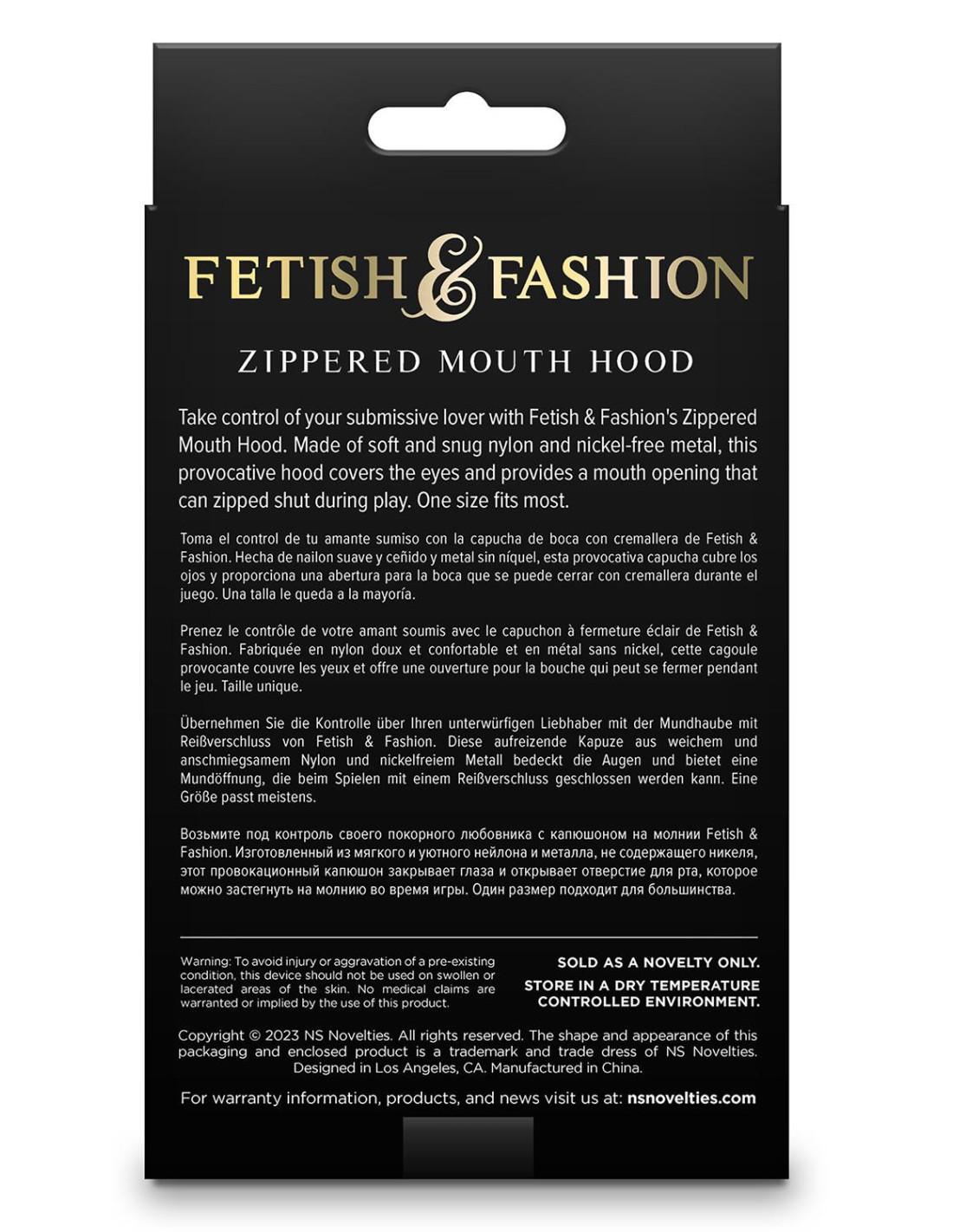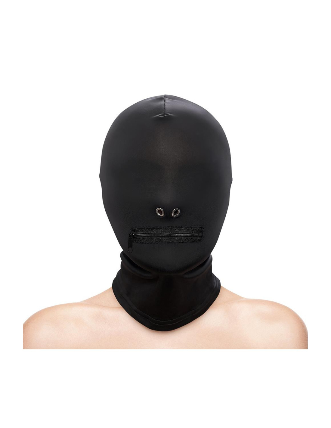 Take control of your submissive lover with Fetish & Fashion’s Zippered Mouth Hood. Made of soft and snug nylon and nickel-free metal, this provocative hood covers the eyes and provides a mouth opening that can zipped shut during play. One size fits most.