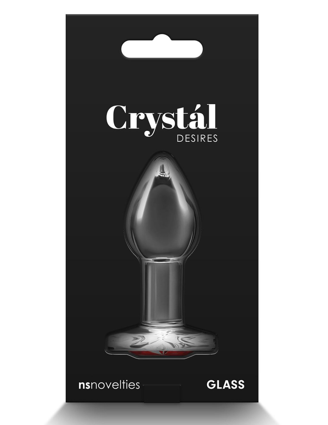Crystal Desires -- Hearts are red and plugs are fun. Our borosilicate glass plugs are adorned with red hearts for a passionate encounter and exciting stimulation.Experience the beauty of pleasure with our stunning glass butt plug. Crafted from high-quality, body-safe glass, this exquisite plug combines elegance with sensual exploration. The clear design allows for visual excitement as you witness every sensation. Adorned with multi-colored gems, this plug becomes a true work of art, adding a touch of glamour to your intimate moments. The smooth and tapered shape ensures easy insertion, while the flared base guarantees safe and worry-free play. The weight and texture of the glass provide unique sensations, enhancing your pleasure with every movement. Whether you're new to anal play or an experienced enthusiast, our clear glass butt plug with multi-colored gems offers a luxurious and enticing experience. Elevate your sensory journey and embrace the beauty of pleasure with this stunning gem-adorned treasure.Product Dimensions: 2.87 x 1.54 x 1.54 inch / 7,2 x 3,9 x 3,9 cm Insertable Dimensions: 2.44 x 1.06 inch / 6,2 x 2,7 cmProduct Material: Glass and ABS