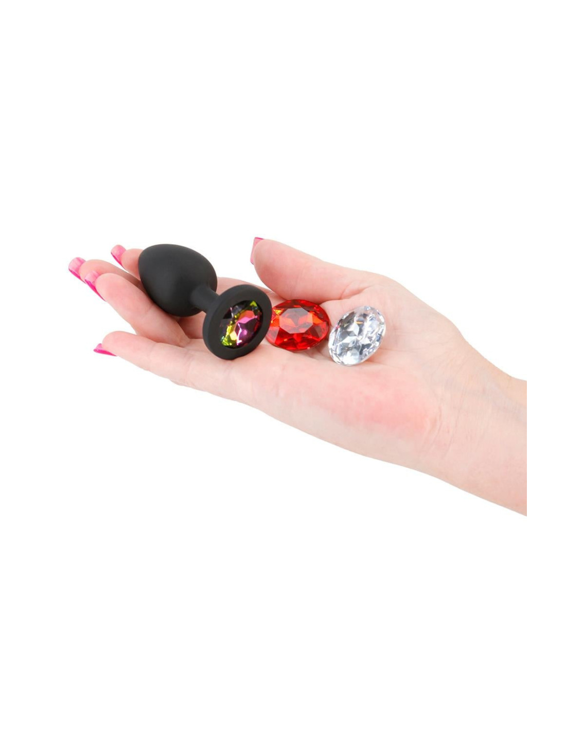 Match your mood and your booty with Glams Xchange. A fashionable accessory to entice and romance. Made from premium grade silicone featuring three interchangeable colorful gems.With 3 interchangeable round gemsMade of silicone and ABSBody safe, phthalate freeProduct Dimensions: 2.76 x 1.22 x 1.22 inch / 7 x 3 x 3 cmInsertable Dimensions: 2.4 x 1.06 inch / 6 x 2,7 cm