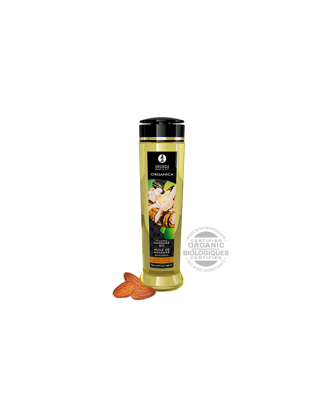 The sensual pleasure of touching and being touched quickly heats up with this luscious oil that glides over the skin like silk.Sensual kissable massage oilMade with 100% certified organic ingredientsMade of 100% natural cold-pressed oilsContains Vitamine ENo greasy residueDoes not clog skin poresContains no mineral or animal oilsFor complete body massageSucculent flavorsNot recommended as a personal lubricantFor external use onlyParaben freeFragrance freeVeganSafe with sex toysLatex friendlyLickableSugar freeGluten free240 ml