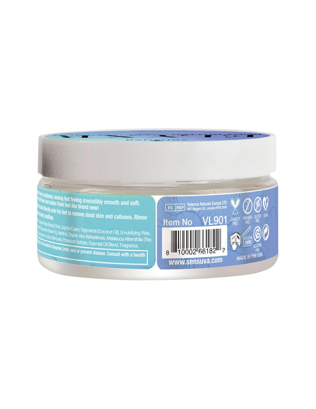 This scrub has an invigorating texture that buffs away roughness, leaving feet feeling irresistibly smooth and soft. Infused with high-quality oils, it deeply hydrates the skin and makes them feel like brand new!Sweet Temptation: Vanilla, Sugar, Sweet PeaSuggested Use: Massage a small handful of foot scrub directly onto the feet to remove dead skin and calluses. Rinse afterward. Use at least once a week to keep feet in best conditionIngredients: Water, Carthamus Tinctotius (Safflower) Seed Oil, Juglans Regia (Walnut) Shell, Caprylic/Capric Triglyceride (Coconut Oil), Emulsifying Wax, Propanediol, Mentha Piperita (Peppermint) Oil, Cellulose, Natural Tocopherol (Vitamin E), Menthol, Organic Aloe Barbadensis, Melaleuca Alternifolia (Tea Tree) Leaf Oil, Polyacrylate, Polyisobutene, Polysorbate, Gluconolactone, Sodium Benzoate, Potassium Sorbate, Essential Oil Blend, Fragrance