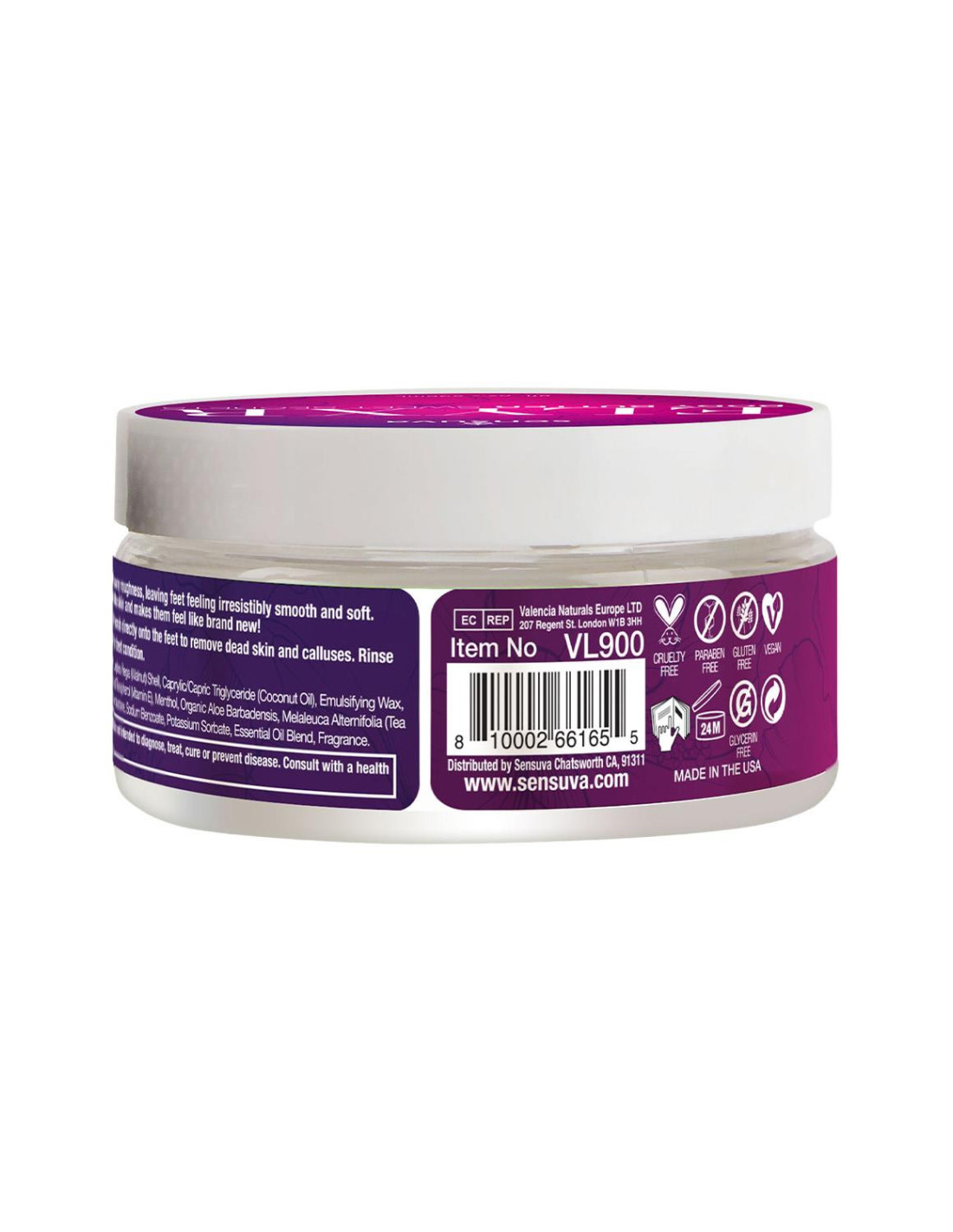 This scrub has an invigorating texture that buffs away roughness, leaving feet feeling irresistibly smooth and soft. Infused with high-quality oils, it deeply hydrates the skin and makes them feel like brand new!Sweet Secrets: Pomegranate, Fig, Coconut, & PlumeriaSuggested Use: Massage a small handful of foot scrub directly onto the feet to remove dead skin and calluses. Rinse afterward. Use at least once a week to keep feet in best conditionIngredients: Water, Carthamus Tinctotius (Safflower) Seed Oil, Juglans Regia (Walnut) Shell, Caprylic/Capric Triglyceride (Coconut Oil), Emulsifying Wax, Propanediol, Mentha Piperita (Peppermint) Oil, Cellulose, Natural Tocopherol (Vitamin E), Menthol, Organic Aloe Barbadensis, Melaleuca Alternifolia (Tea Tree) Leaf Oil, Polyacrylate, Polyisobutene, Polysorbate, Gluconolactone, Sodium Benzoate, Potassium Sorbate, Essential Oil Blend, Fragrance