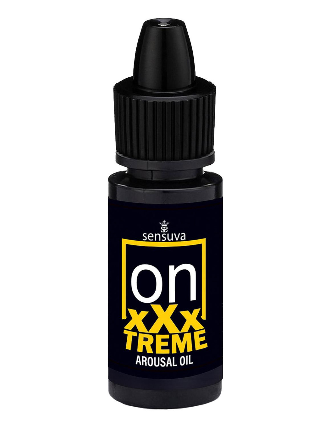 EXTREME BUZZING AROUSAL OIL with ANTIDOTE OILON xXxTREME, Sensuva’s newest addition is exactly what it sounds...EXTREME! Our most powerful formula yet. This isn’t your mamma’s formula. Not recommended for beginners. One drop and you’ll be off. In fact this is so powerful we included an antidote oil in case you can’t take the heat.ON xXxTREME is the most extremely shocking powerful formula to date. Not for beginners. Comes with 2 separate bottles, one antidote and one arousal oil.This shockingly powerful botanical formula creates a warm and extremely unique buzzing sensation. It awakens the nerve endings, increases blood flow, and creates a sensation unlike any other.Using ON Arousal Oil, will help a woman's body respond more easily to physical stimulation, and give her the type of full-body awareness that raises her arousal level. This allows the body the ability to achieve a heightened level of sensation. Another wonderful benefit of ON Arousal is that it may actually help some women increase their production of personal lubrication. This may be extremely helpful for women going through hormonal changes, hysterectomy, or taking medications that tend to decrease their body’s ability to self-lubricate.WHAT MAKES ON FOR HER AROUSAL OIL SO UNIQUE?It is the most powerful formula available on the marketIt creates a very unique buzzing, vibration sensation on the clitorisIt is made of 100% natural botanical ingredients and essential oilsMedically endorsed by Dr. Jennifer Berman, MDIt is safe and pleasurable to use during oral sexThere is no menthol, L-Arginine, glycerin or parabensIt does not dry out vaginal tissueWHO SHOULD USE ON FOR HER AROUSAL OIL?Women at any age and stage in their life that want to feel more sensation during sexWomen who want to have quicker or more powerful orgasmsWomen who want to wear it daily to feel turned on throughout the dayIt is perfect for women with dryness issues or going through menopauseMany women say it helps them lubricate moreHOW DO I APPLY ON AROUSAL Oil?Apply 1 drop to the finger and directly massage onto the clitoris. After 5 minutes add more if desired. Within seconds, most women feel a warm, pleasurable buzzing or vibrating sensation (at different times of the month, women feel different amounts of sensation due to their fluctuation in hormones). The effect can last up to 45 minutes.If ON xXxTREME arousal oil proves to be too much use antidote to reduce effects. Use as much antidote as needed.Ingredients:Oil: Prunus Amygdalus Dulcis (Sweet Almond) Oil, Cinnamomum Zeylanicum (Cinnamon) Oil, Natural Tocopherols (vitamin e), Stevia Rebaudiana Extract, Zanthoxylum Americanum, Zingiber Officinale (Ginger), Natural Flavors, Rosmarinus Officinalis (Rosemary)Antidote: Sweet Almond Extract