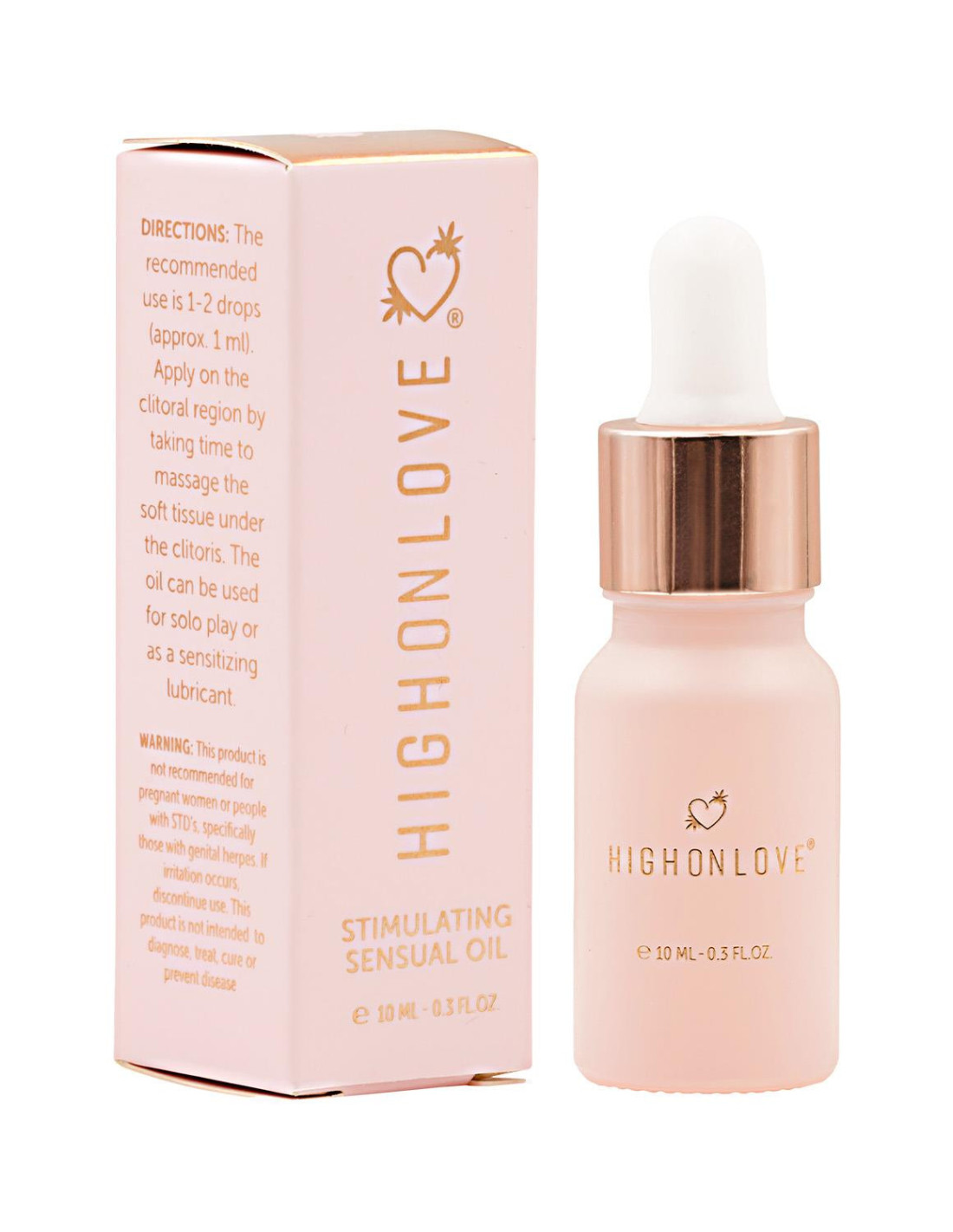 Mini Intimate Stimulating Oil For Heightened PleasureA travel-friendly version of our best-selling bedside essential. Blended with premium hemp seed oil, HighOnLove® silky-smooth Stimulating Sensual Oil was designed to ignite your most intense climax. The exhilarating blend heightens sensitivity for ultra-sweet sensations, whether solo or with a partner.How to use: Gently massage 1-2 pumps of gel onto the clitoral region prior to intimacy or self-love. Safe for use with condoms, this gel can be used for solo play or as a sensitizing lubricant.FAQ: Can I use HighOnLove® Stimulating Sensual Oil with latex condoms?Our Stimulating Sensual Oil hasn't been tested for condom compatibility, so we don't recommend it (seriously). If this a concern, we recommend our Stimulating O Gel instead, which is water-based and totally safe for use with condoms.