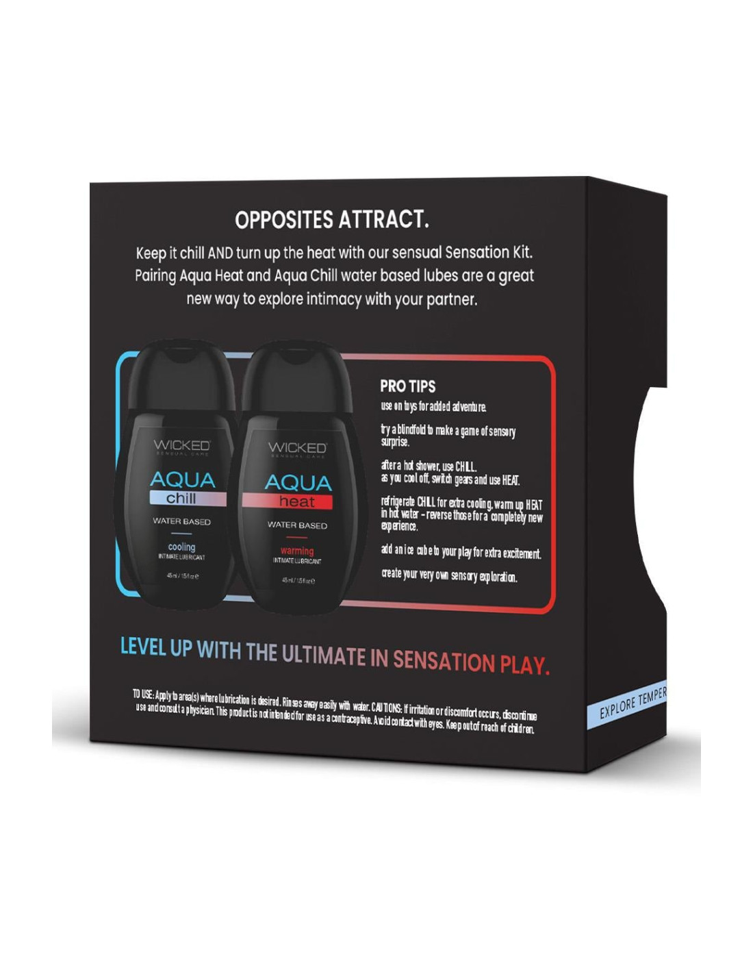Keep it chill AND turn up the heat with this sensual Sensation Kit. Pairing Aqua Heat and Aqua Chill water based lubes, it is a great new way to explore intimacy with your partner.
