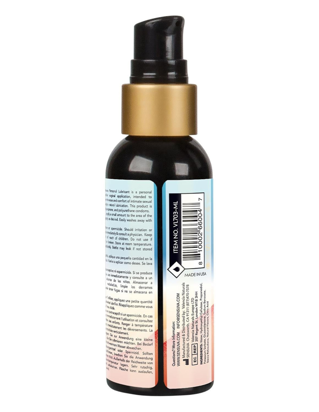 Sensuva's Flavored Natural Water-Based Formula is a clean, high-quality personal lubricant that feels the closest to your own natural lubrication. Made with healthy, body-safe ingredients, this water-based personal moisturizer provides a long-lasting, comfortable feeling that will enhance your personal pleasure with a hint of sweet delicatable flavors. 99% Natural and Free from Glycerin, Gluten and Parabens. FDA 510(K) certified.Ingredients:Water, Hydroxyethyl Cellulose, Propanediol, Potassium Sorbate, Gluconolactone, Sodium Benzoate, Stevia Rebaudiana, Natural Flavors, Citric Acid 99% NaturalGlycerin FreeParaben FreeGluten FreeVegan