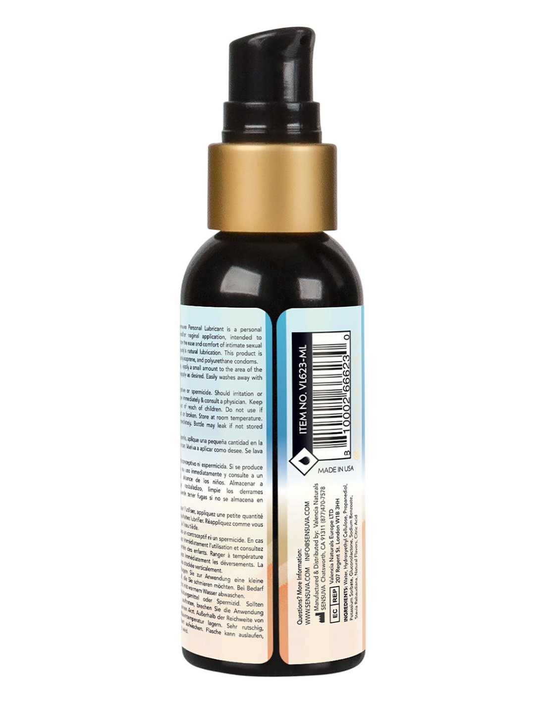 Sensuva's Flavored Natural Water-Based Formula is a clean, high-quality personal lubricant that feels the closest to your own natural lubrication. Made with healthy, body-safe ingredients, this water-based personal moisturizer provides a long-lasting, comfortable feeling that will enhance your personal pleasure with a hint of sweet delicatable flavors. 99% Natural and Free from Glycerin, Gluten and Parabens. FDA 510(K) certified.Ingredients:Water, Hydroxyethyl Cellulose, Propanediol, Potassium Sorbate, Gluconolactone, Sodium Benzoate, Stevia Rebaudiana, Natural Flavors, Citric Acid 99% NaturalGlycerin FreeParaben FreeGluten FreeVegan
