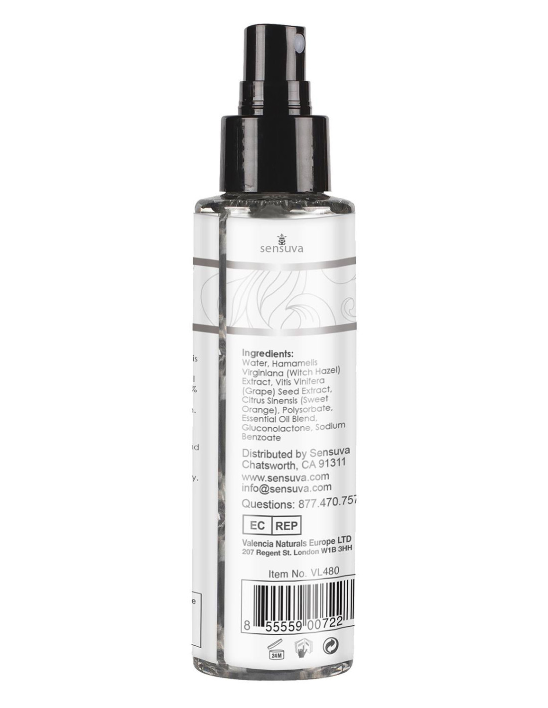 Think Clean Thoughts is a better choice for cleaning pleasure products than standard bar hand and body soaps because it is oil-free and will not break down toy materials, nor does it leave any residue that may be irritating to delicate tissue. Simple to use: spray directly onto pleasure products both prior to use, and afterward. Wipe away extra fluid.Ingredients:Water, Isopropyl Alcohol, Hamamelis Virginiana (Witch Hazel) Extract, Citrus Sinensis (Sweet Orange), Polysorbate, Gluconolactone, Sodium Benzoate, Fragrance Glycerin FreeParaben FreeGluten FreeRecyclable Materials