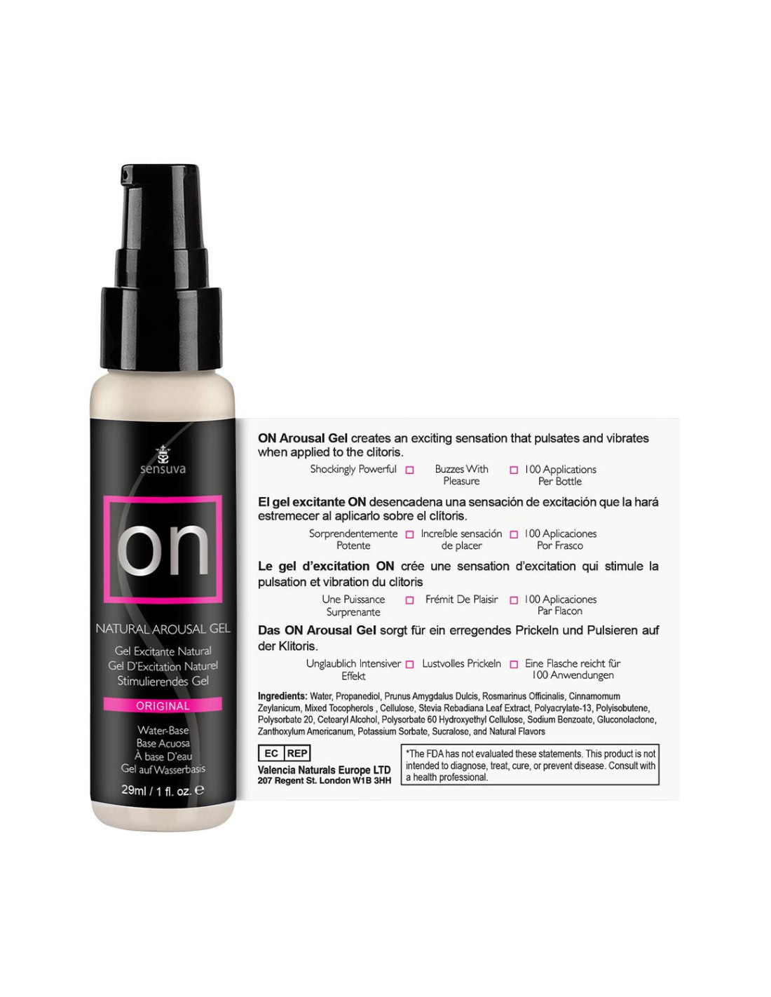 ON Arousal Gel increases a clitoral orgasm intensity, duration and frequency, now in a no-mess water-base safe formula! Designed to enhance intimacy, ON Gel uses a natural botanical blend of essential oils to create feelings of natural arousal and increased lubrication in most vulva users.