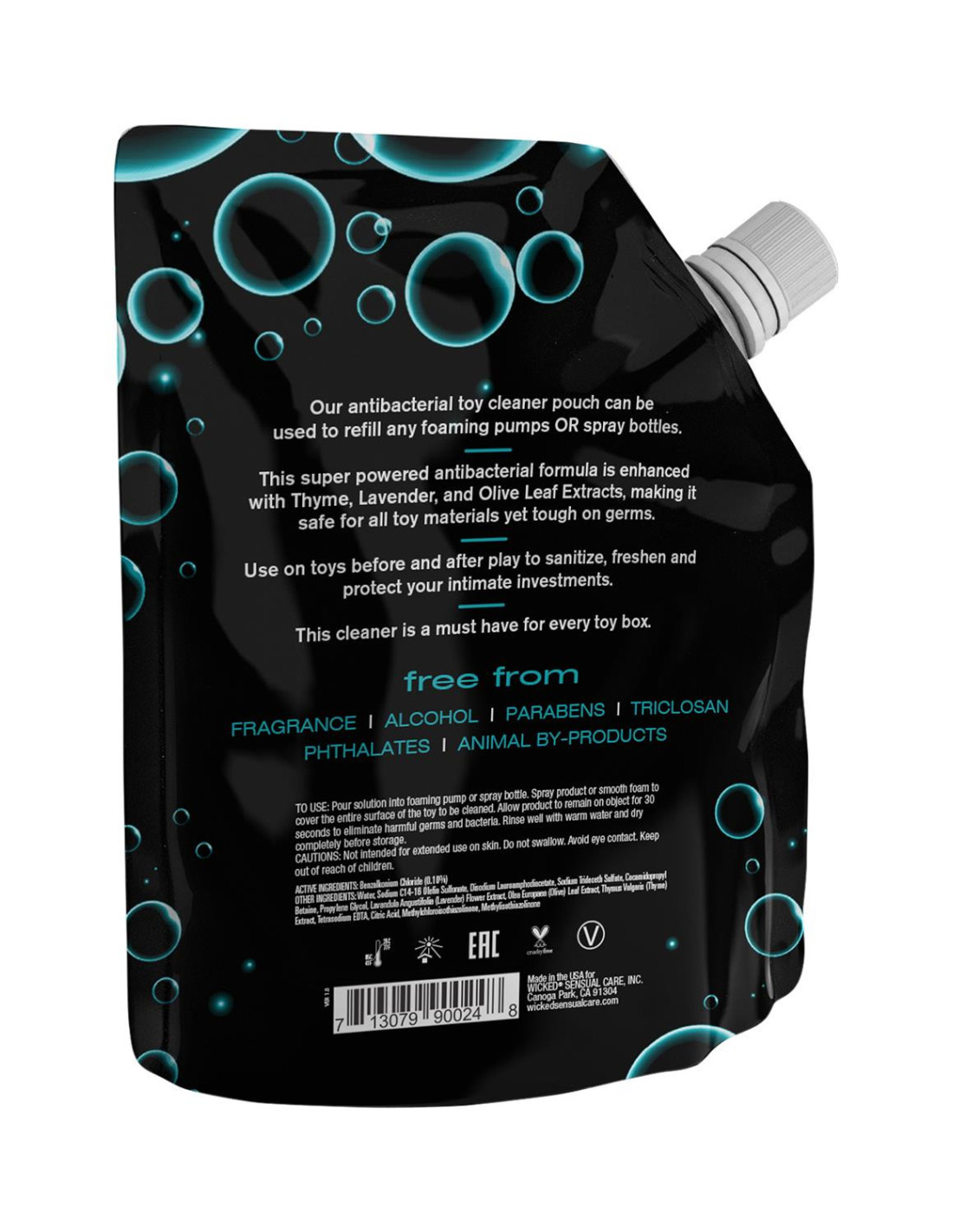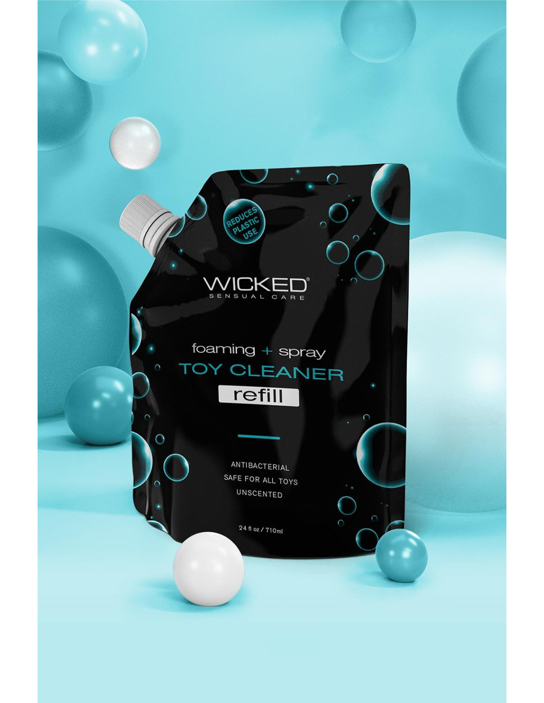 Wicked Foam & Spray toy cleaner refill. 710 ml. Wicked's antibacterial toy cleaner pouch can be used to refill any