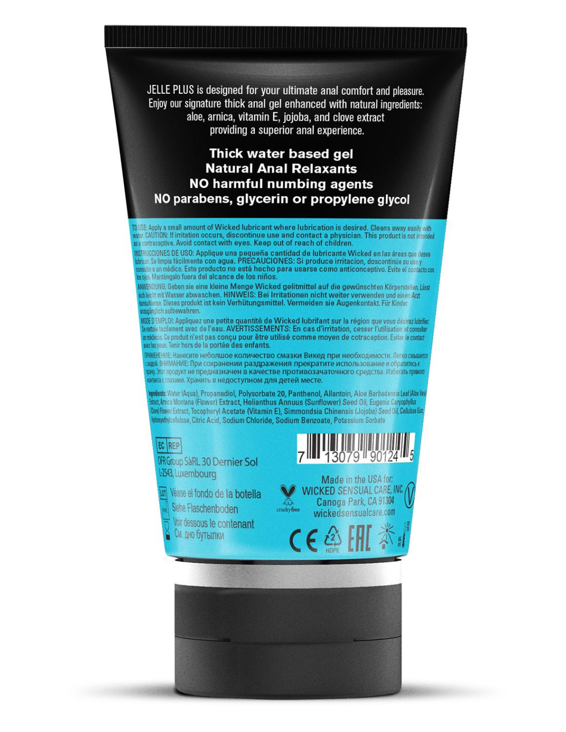 Sorbate. Introducing Jelle Plus, a safer alternative to using numbing agents for anal play.As you may already know, lube is both essential and necessary for anal play since our bodies don’t self lubricate there. At Wicked Sensual Care, we know numbing agents can be dangerous when used during anal play – pain is a signal from our body indicating something is wrong, that we should stop or at the very least slow down. We created Jelle Plus with natural relaxants and other beneficial ingredients to give you safer options for anal play and increase your pleasure at the same time.Inspired by our best selling Anal Jelle, Jelle Plus has its own unique formula featuring: Clove oil and jojoba as natural relaxantsArnica, aloe, juniper, and vitamin E to sootheOur signature olive leaf extract for extra protection Contains no glycerin, parabens, or propylene glycolLatex friendly and safe for all toy materials.Vegan - No animal by-products or testing