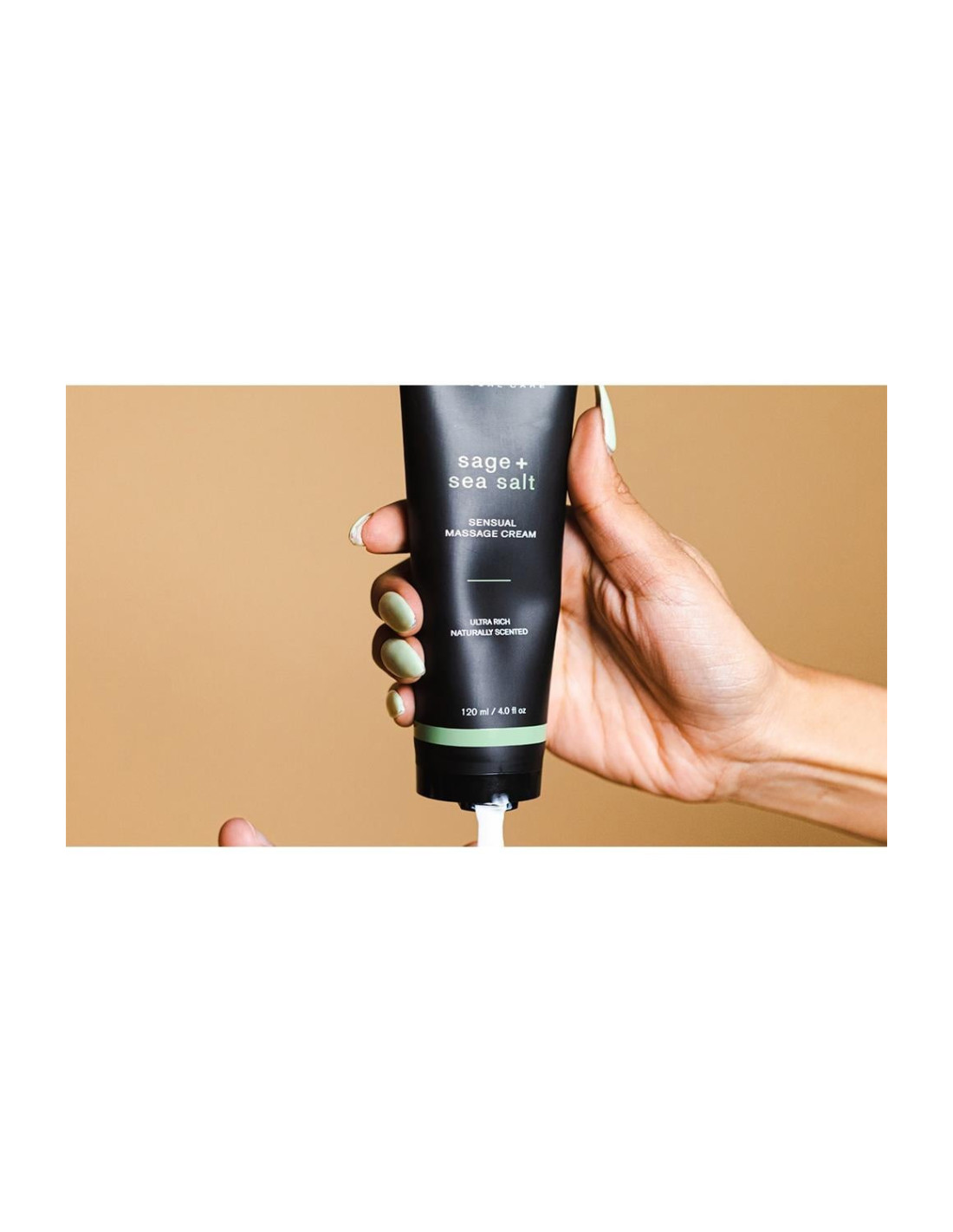 Sage + Sea Salt Massage Cream, because skin hunger is real.Vitamins A & EGently scentedFor external use onlyCan be used as a daily lotionVeganCream-to-liquidExperience relaxation and rejuvenation with sage + sea salt Sensual Massage Cream. Soothe, soften, and nourish every inch of skin with each stroke.Blended with indulgent oilsVitamins A and E quench thirsty skinElectrolytes for skin hydrationPerfect for solo or partnered useSkin hunger is real. Satisfy your craving for touch with Wicked Sensual Care.Directions for use: Place your perfect amount of sensual massage cream in the palm of your hand. Rub your hands together for warmth, then slowly caress all areas in need of attention.Be advised: May lead to increased desire, intense sensations, unparalleled satisfaction and extreme bliss.Sage + Sea Salt Sensual Massage Cream Ingredient(s): Water (Aqua), Caprylic/Capric Triglyceride, Cocos Nucifera (Coconut) Oil, Prunus Amygdalus Dulcis (Sweet Almond) Oil, Cetearyl Olivate, Glyceryl Stearate, Glycerin, Dimethicone, Cetearyl Alcohol, Sea Salt, Thuja Occidentalis Leaf Oil, Salvia Sclarea (Clary) Oil, Citrus Limon (Lemon) Peel Oil, Citrus Nobilis (Mandarin Orange ) Peel Oil, Rosmarinus Officinalis (Rosemary) Leaf Oil, Saliva Officinalis (Sage ) Oil, Santalum Album (Sandalwood) Oil, Glycine Soja (Soybean) Oil, Vetiveria Zizanoides Root Oil, Citrus Aurantium Bergamia (Bergamot) Fruit Oil, Theobroma Cacao (Cocoa) Seed Butter, Butyrospermum Parkii (Shea) Butter, Aloe Barbadensis (Aloe Vera) Leaf Extract, Tocopheryl Acetate (Vitamin E), Retinyl Palmitate (Vitamin A), Ascorbic Acid, Sorbitan Olivate, Ceteareth-20, Calcium, Magnesium, Potassium, Xanthan Gum, Sodium Phytate, Fragrance (Parfum), Sodium Benzoate, Potassium Sorbate, Citric AcidCautions: Keep out of reach of children. Avoid contact with eyes or open skin. If irritation occurs, rinse well with cool water, contact a physician and discontinue use. Massage and relaxation productsWicked Sensual Care massage products are perfect when your body craves touch and relaxation. Skin hunger is real. Satisfy your craving for touch with Stripped + Bare, Orange Blossom + Patchouli, and Sage + Sea Salt sensual massage creams.