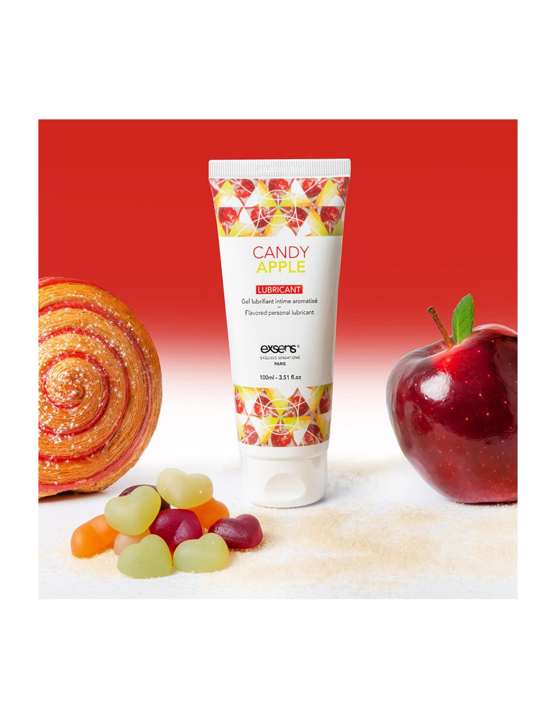 The forbidden fruit… This ultra pure water based lubricant with the aroma of the Candy Apple provides a natural sensation for greater sexual comfort.Medical deviceDoes not stickSlipperyCompatible with latex and polyisopropene condomsEdible.Suitable for vaginal and oral useLubricates and moisturizes the vaginal mucous membranesImproves the comfort of sexual relationsIngredients: glycerin, water, propylene glycol, flavor, hydroxyethyl cellulose, sodium benzoate, potassium sorbate, sodium saccharin, citric acidWaterbased lubricantsThe 3 water based lubricants from Exsens come with Candy Apple flavour, with organic Aloe Vera extract and with Raspberry flavour. The lubricant gels have great gliding properties, are not sticky and are suitable for vaginal use. The lubes are compatible with latex and polyisopropene condoms.