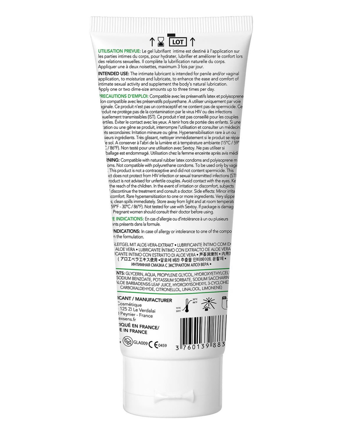 The natural surprise… This lubricant with ultra pure water and Aloe Vera extract provides a natural sensation for greater sexual comfort.Medical deviceDoes not stickSlipperyCompatible with latex and polyisopropene condomsTo be used only vaginallyLubricates and moisturizes the vaginal mucosaImproves the comfort of sexual relationsWith organic Aloe Vera extractIngredients: glycerin, water, propylene glycol, hydroxyethyl cellulose, perfume, sodium benzoate, potassium sorbate, sodium saccharin, citric acid, aloe barbardensis leaf juice, hydroxyisohexyl 3-cyclohexene carboxaldehyde, citronellol, linalool, limoneneWaterbased lubricantsThe 3 water based lubricants from Exsens come with Candy Apple flavour, with organic Aloe Vera extract and with Raspberry flavour. The lubricant gels have great gliding properties, are not sticky and are suitable for vaginal use. The lubes are compatible with latex and polyisopropene condoms.