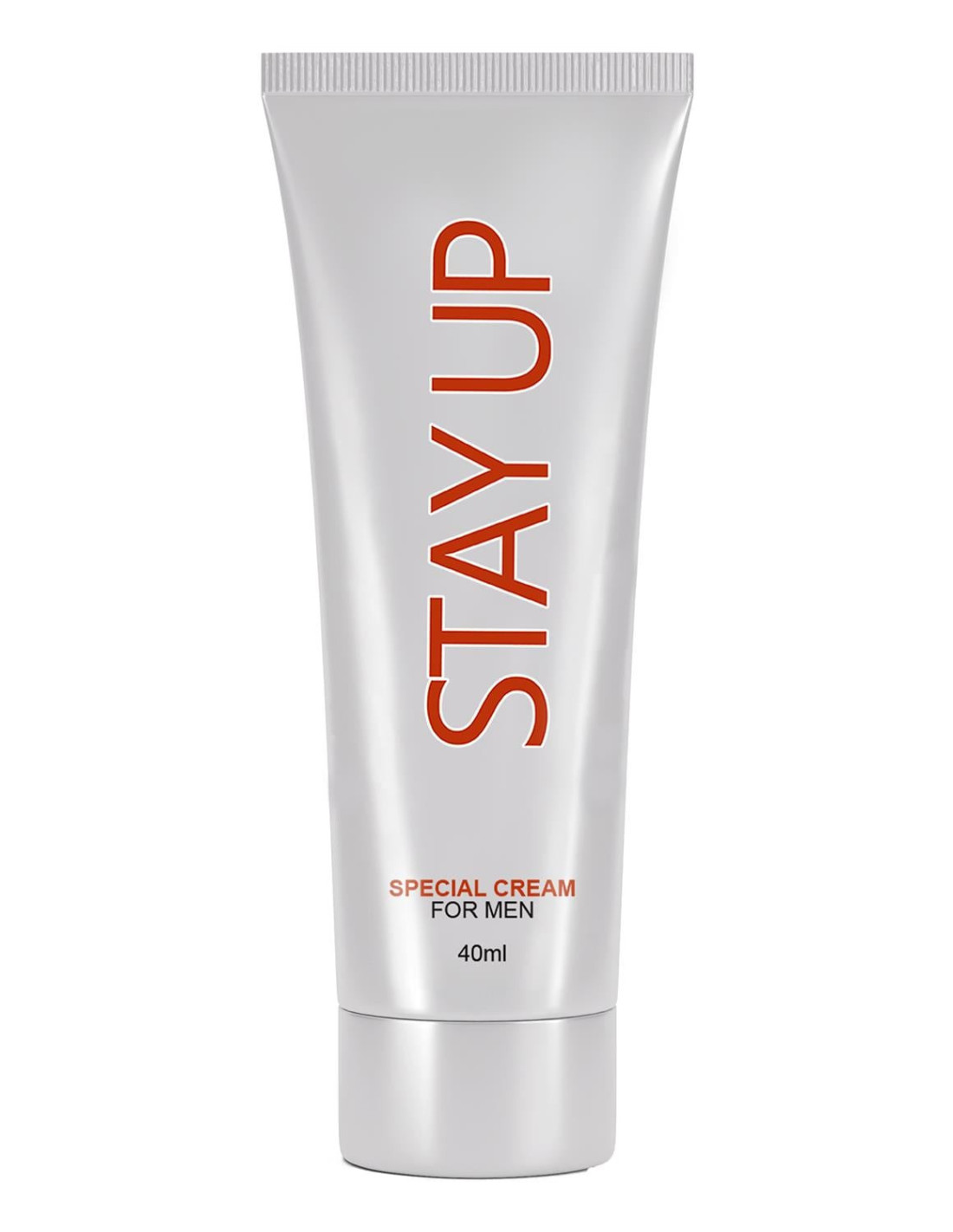 Stay Up is a delay cream with a cooling action with an analgesic effect on the upper layer of the penis. Stay Up can help you delay your orgasm with a simple action. Composed mainly of refreshing active ingredients, it will help to make the skin of the penis a little less sensitive for a short time to make the pleasure last longer.Stay up delay cream for the penis40 mlField mint & Eucalyptus & Green Mint & Peppermint: Strong cooling actionHazelnut vegetable oil: Hydrating & MoisturizingIngredients: Aqua, Cetearyl alcohol, Glycerin paraffinum liquidium, Corylus avellana seed oil, Synthetic beeswax, Phenoxyethanol, Ceteareth-20, Menthyl lactate, Mentha arvensis oil, Eucalyptus globulus oil, Mentha viridis oil, Mentha piperata oil, Foeniculum vulgare oil, Ethylhexylglycerin, PPG-26 buteth-26/PEG-40 hydrogenated castor oil, Xanthan gum, Tocopheryl acetate, Menthol, Cineole 1,8, Carvone, Menthone.