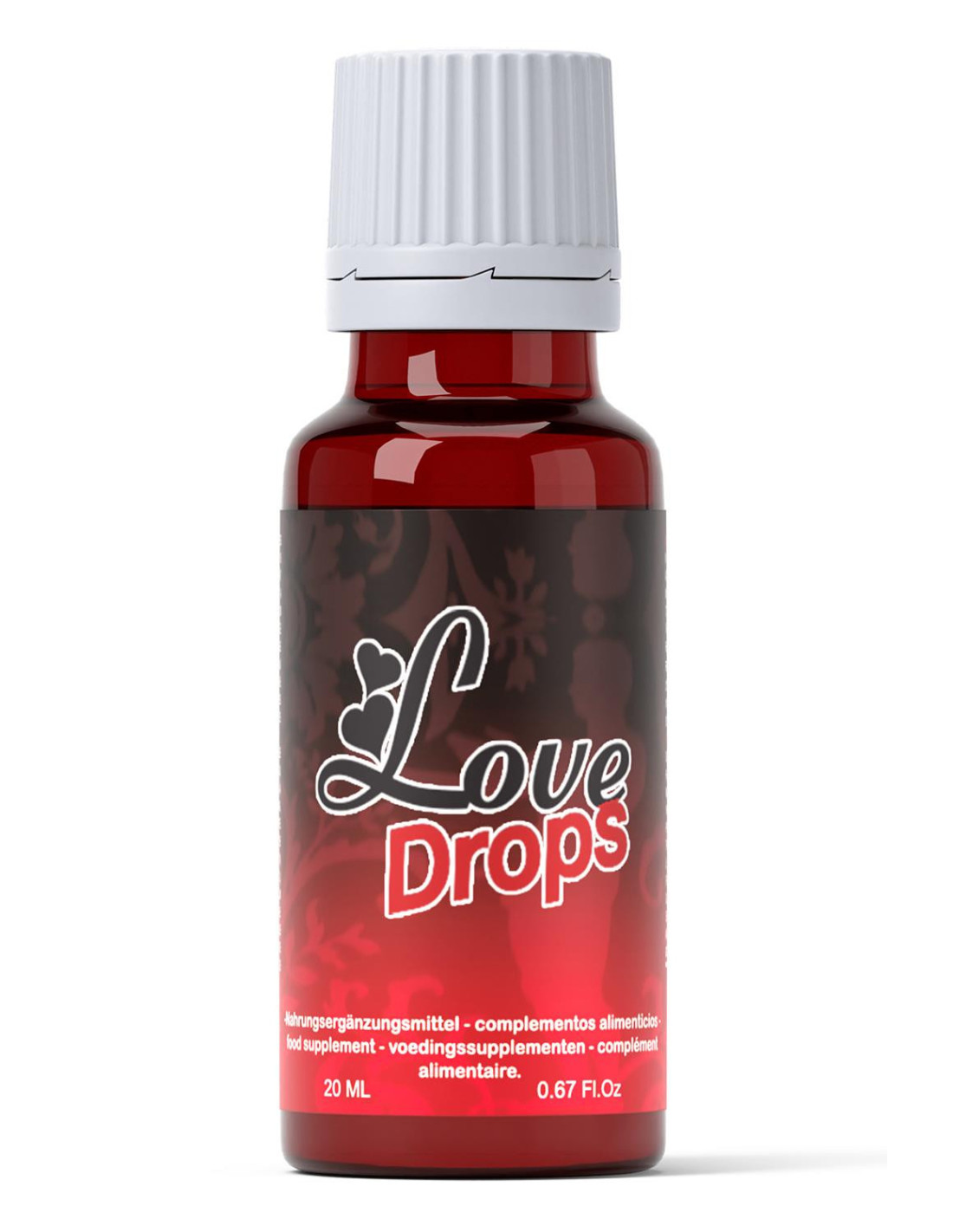 Love Drops is a unisex sexual stimulant for men and women. Its unique formula has been developed for sexual well-being and is composed of a very varied multi-plant complex including cinnamon, ginger, peppermint, oats, nettle ... which makes it a very complete sexual stimulant and offer multiple benefits.Original product distributed under this identity for more than 15 years.Sexual stimulant for women and men20 mlCinnamon: Reduces sexual fatigue, increases libidoGinger: Promotes male erection, powerful aphrodisiacOats: Rich in plant hormones, natural source of vitaminNettle: Reduces anxiety and stress, helps fight fatigue, increases the quality and quantity of semen in men, increases libidoRecommended use: Consume 5 to 7 drops diluted in any drink 15 minutes with sexual activity. Food supplement to be taken as part of a diversified and balanced diet. Keep out of the reach of children. Do not exceed the maximum daily dose. Maximum daily dose: 21 drops. Contains gluten. Ingredients: Aqueous extract of dried plants 69.4% , bulking agent: vegetable glycerin E422, water, acidifier: citric acid E330, preservative: E202 , antioxidant: E300. Contains: gluten.