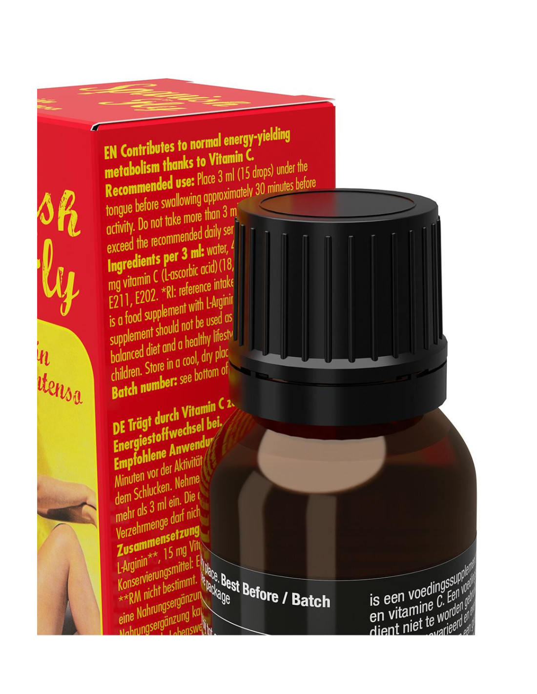 Spanish Fly Passion Intenso contains energizing drops that naturally support your sexual energy for intense pleasure. The drops contain, among other things, L-arginine and, thanks to Vitamin C, contribute to sexual performance by activating the natural energy in the body, so that more desire can be experienced. The sexual power of Spanish Fly Passion Intenso provides intense pleasure full of passion.More sexual power for intense pleasureVitamin C activates the natural energy in the bodyVitamin C contributes to fitness15 mlAdditional informationThis is a food supplement with L-Arginine and Vitamin C. A food supplement should not be used as a substitute for a varied and balanced diet and a healthy lifestyle. Keep out of reach of children. Store in a cool, dry place.How does it workThis energizing product naturally promotes sexual performance. The drops are easily and quickly absorbed by the body and contribute to a sexual impulse. The balanced formula makes use of the properties of the ingredients Vitamin C. Vitamin C ensures the proper functioning of the nervous system and promotes the energy metabolism of the body. This can improve stamina and sexual energy, allowing for more intense sexual desire to be experienced.Ingredients per 3 mlwater, 40,5 mg L-arginine**, 15 mg vitamin C (L-ascorbic acid)(18,75% RI*), preservatives: E211, E202. *RI = Reference intake. **RI not established.UsagePlace 3 ml (15 drops) under the tongue before swallowing approximately 30 minutes before activity. Do not take more than 3 ml within 24 hours. Do not exceed the recommended daily serving.Languages on packagingen/de/fr/es/nl/it
