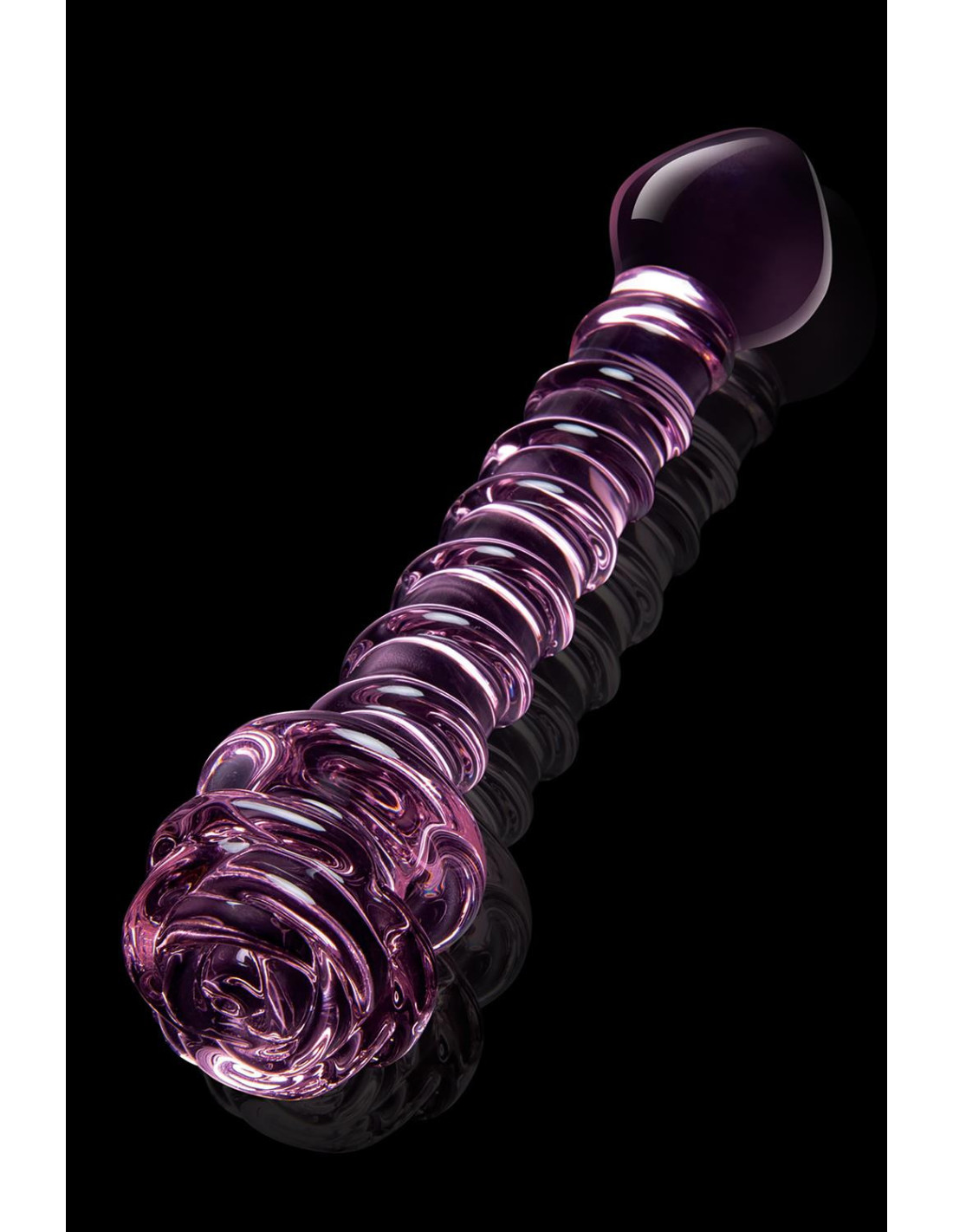 Beautiful and functional, this 9' Rosebud Spiral G-spot Dildo from the Glaze Glass collection is perfect for all levels. Made from body-safe borosilicate glass, beginners will appreciate its friendly design and size, while seasoned pros will love the shape that is made to please.Beginner-friendly designCompatible with all lubricantsStorage bag includedBody-safe easy to clean materialCool down or warm up for temperature play