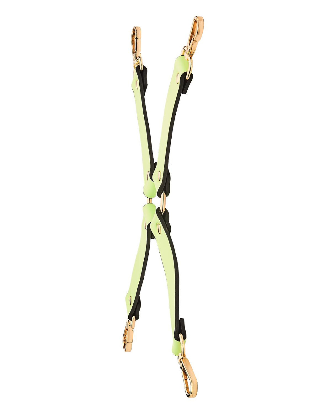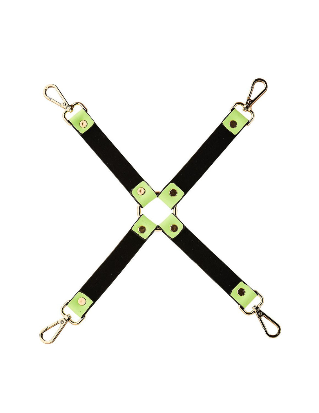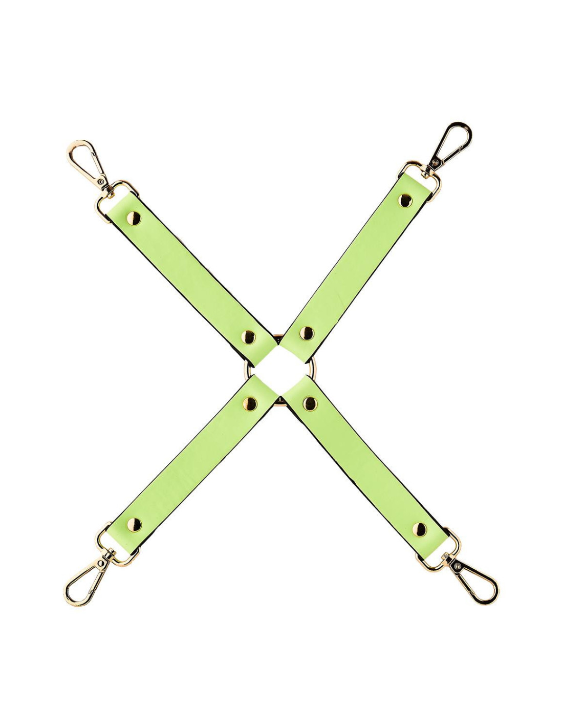 Glow in the dark hog tie from Dream Toys' label Radiant with nickel free metal details. Enhance your bondage game with a hog tie to fasten the arms and legs of your sub. The 4 musketon hooks can be used to attach chains, ropes, handcuffs, ankle cuffs and other bondage accessories, for example the wrist and ankle cuffs from the Radiant collection.Hog tieGlow in the darkWith 4 clasp hooksNickel free hardware