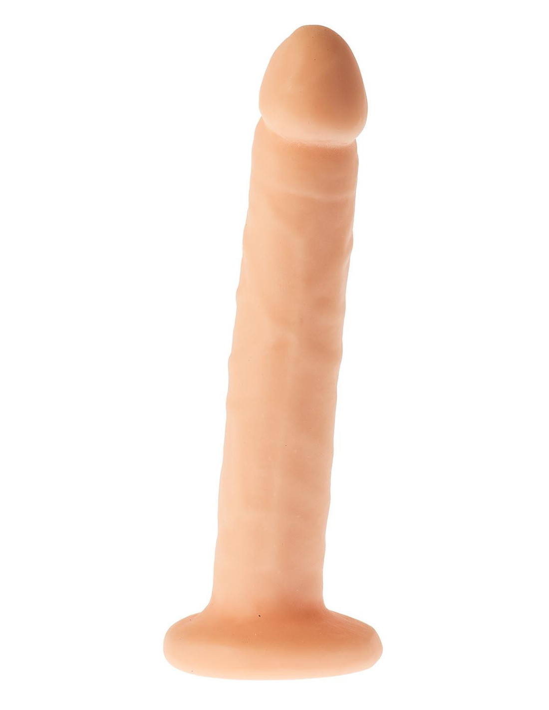 Mad Mathew from the Mr Dixx - The Original collection is a soft and flexible dildo, made of anti-bacterial PVC, non-smelling and body safe.Mathew feels like the real thing and he has a strong suction cup enabling users to enjoy a range of possibilities for all kinds of pleasure, solo or with a partner. The suction cup base makes sure that Mathew will stick to any smooth, flat surface, whether it’s the floor, the headboard of the bed or the shower wall. Thanks to the suction cup the dildo can be used in a harness as well, making sure that it stays securely in place when put through the O-ring so the wearer can enjoy this Mr Dixx without any worries. Mad Mathew has modest dimensions, a straight, veiny shaft and a distinct penis head. Perfect for beginners, great for anal penetration and for all users who simply don't want too much girth. Flexible dildo with a realistic feelStrong suction cupHarness compatible Made of anti-bacterial PVCFree of phthalates and latex, non-smelling, body safeLength 13,5 cmWidth 2,4 cm
