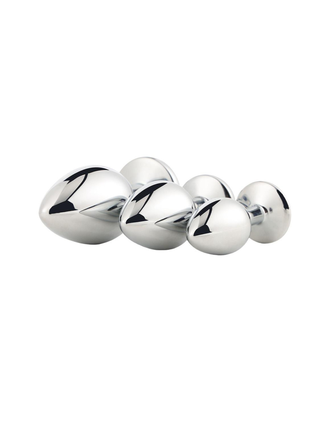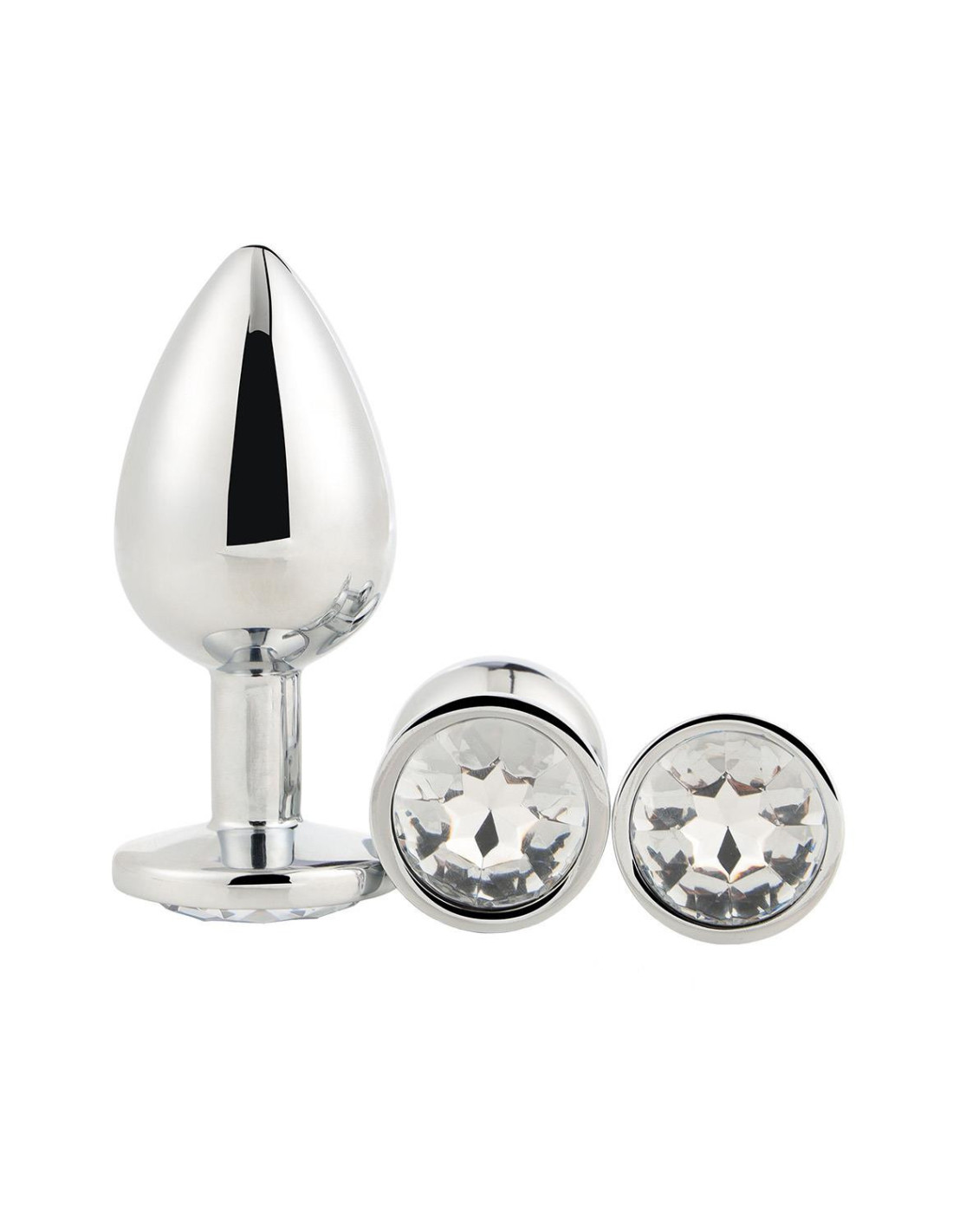 The Gleaming Love collection presents this set of shiny anal plugs in 3 sizes, each with a gem stone. Made of smooth lightweight aluminium and seamless, these pleasure toys are easy to glide and the flared base ensures a sense of security while keeping the jewel sitting comfortably between the butt cheeks.The jewelled plugs are beautifully decorated with a delicate round gem stone. From tip to base the seamless anal plugs feature a glimmering sheen that pairs wonderfully with the sparkle of the matching gem stone. The tapered bulb shape of the plugs combines ease of use with erotic backdoor pleasure. The Gleaming Love plugs can be heated or cooled in water before use to provide additional sensations.A storage bag made of soft velvety fabric that closes with a drawstring is included. Large plug:length 9,5 cmdiameter 4,3 cmMedium plug:length 8,3 cmdiameter 3,4 cmSmall plug:length 7,1 cmdiameter 2,7 cm