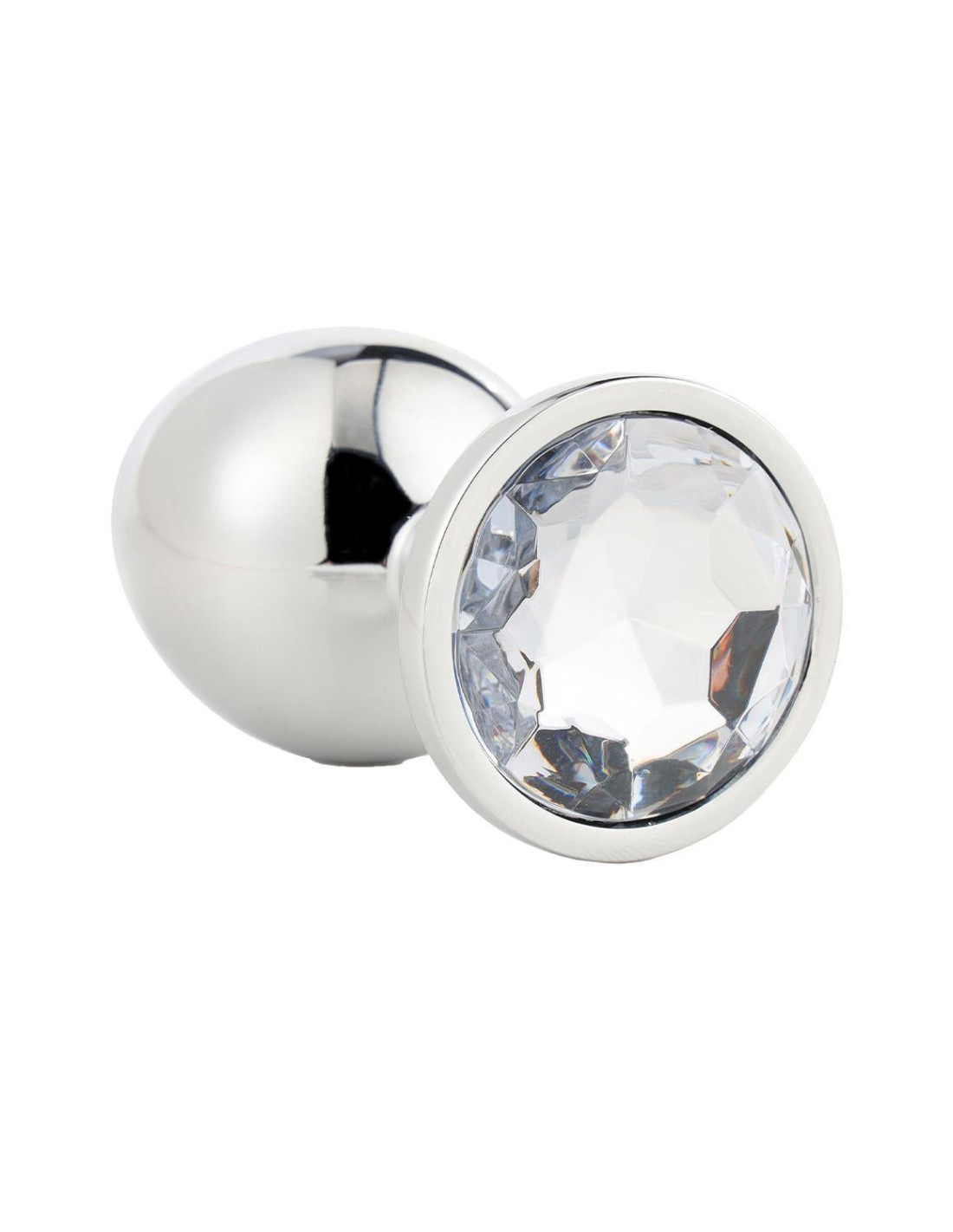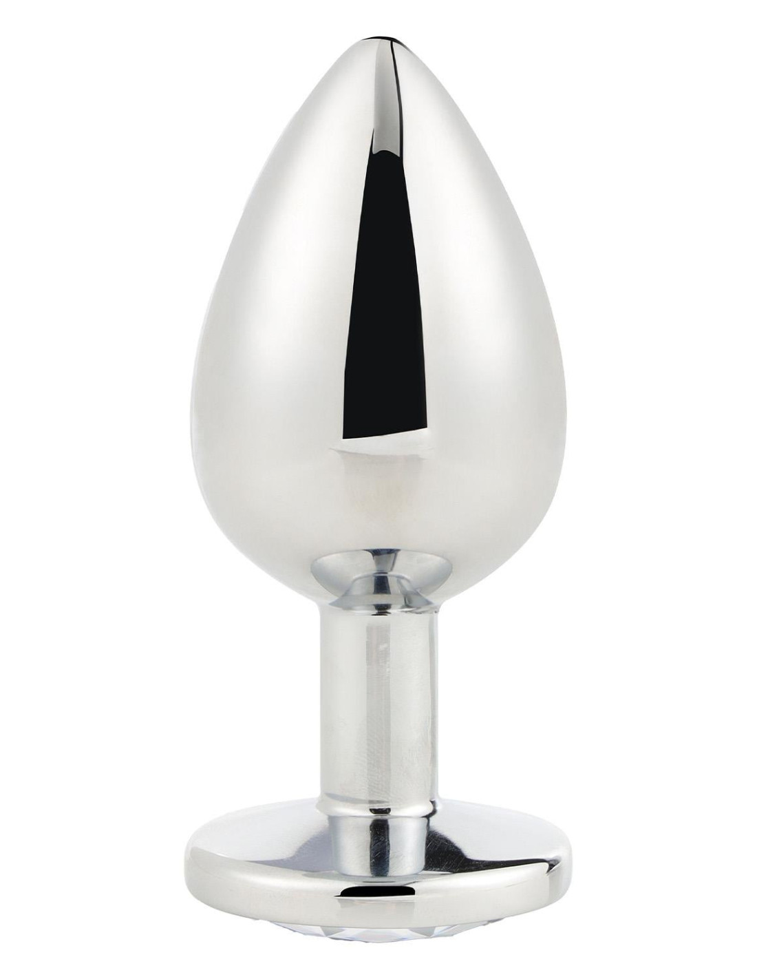 The Gleaming Love collection presents this Large shiny anal plug with gem stone. Made of smooth lightweight aluminium and seamless, this pleasure toy is easy to glide and the flared base ensures a sense of security while keeping the jewel sitting comfortably between the butt cheeks.This jewelled plug is beautifully decorated with a delicate round gem stone. From tip to base the