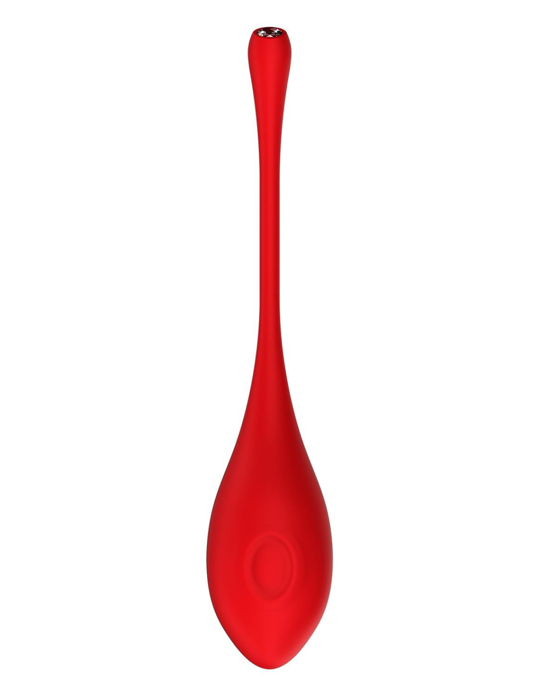 waterproof kegel ball made of body safe silicone that offers 3 levels of steady vibration and 7 different rhythms. The control