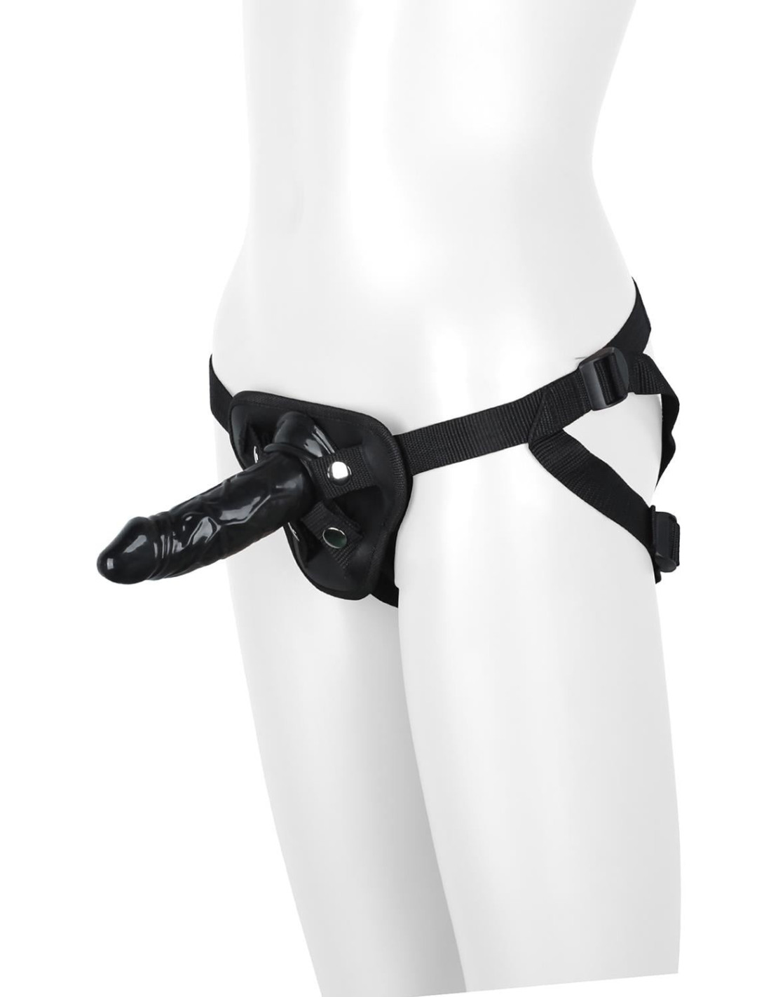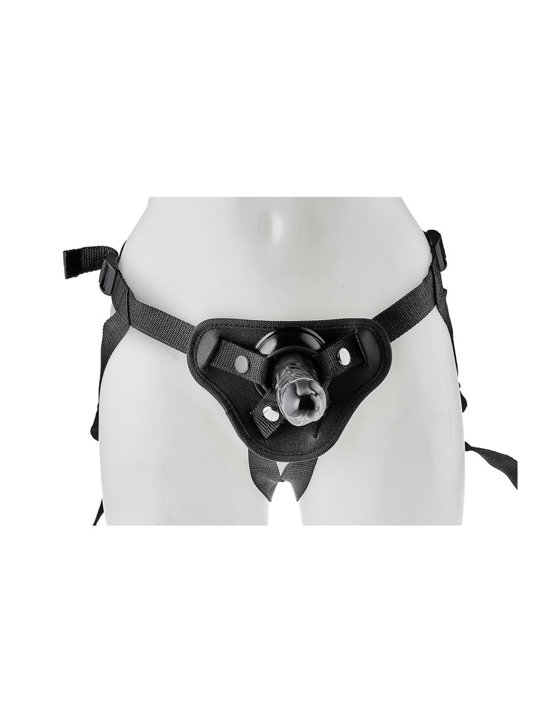 A soft, comfortable to wear harness with a detachable dildo. The harness has thigh and waist straps that are fully adjustable with plastic clips. The interchangeable dildo with veins and glans is made of phthalate free PVC. It can be attached to the harness with snap buttons. Dimensions of the dildo: diameter 4 cm, length 13 cm.Harness with detachable dildoThigh and waist straps are fully adjustableInterchangeable dildo, made of phthalate free PVC.Dimensions of the dildo: diameter 4 cm, length 13 cm