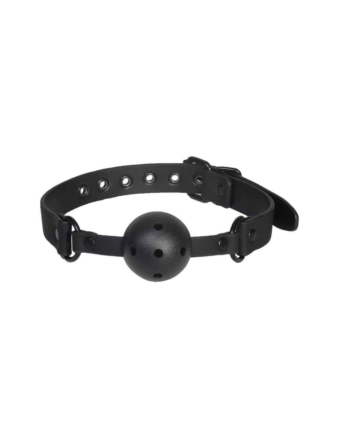 Breathable ball gag from Blaze. The smooth plastic ball (4,7 cm) is tasteless and odorless and large enough to gag them without being uncomfortable. The ball gag remains comfortable to wear thanks to the breathing holes. The strap is made of leatherlook material and is fully adjustable with the metal buckle closure.Breathable ball gagSmooth plastic ball, tasteless and odorlessLeatherlook neck strapAdjustable with metal buckle closure