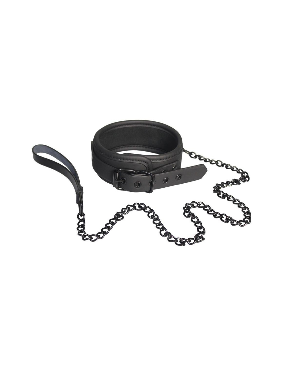 This black Collar & Leash set has all black nickel free hardware and is lined in a soft yet durable neoprene material for sexy and comfortable play. It is easy to adjust in size thanks to the buckle closure. The black metal leash with attached wrist loop can easily be connected or disconnected with the musketon clip.Durable neoprene collarThe all black hardware is nickel freeFully adjustable with the simple, belt style buckle and connected to a removable black chain
