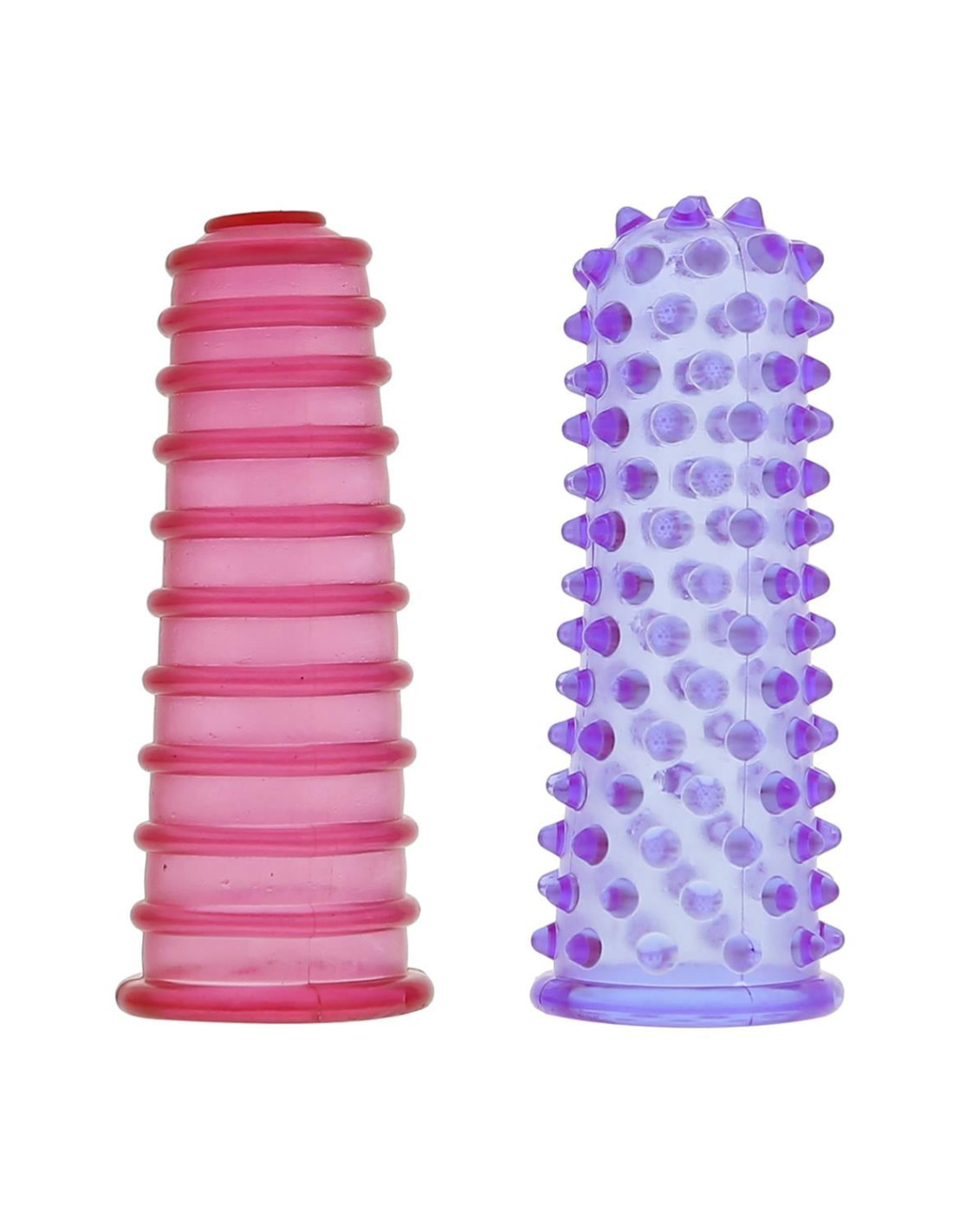 and are reusable.These PVC bumpy and ribbed tip lust fingers have a silk look and are easy to clean. Packed as a set of two in the colours red and purple. Dimensions: Diameter 3,0 cm. Length 8,0 cm.