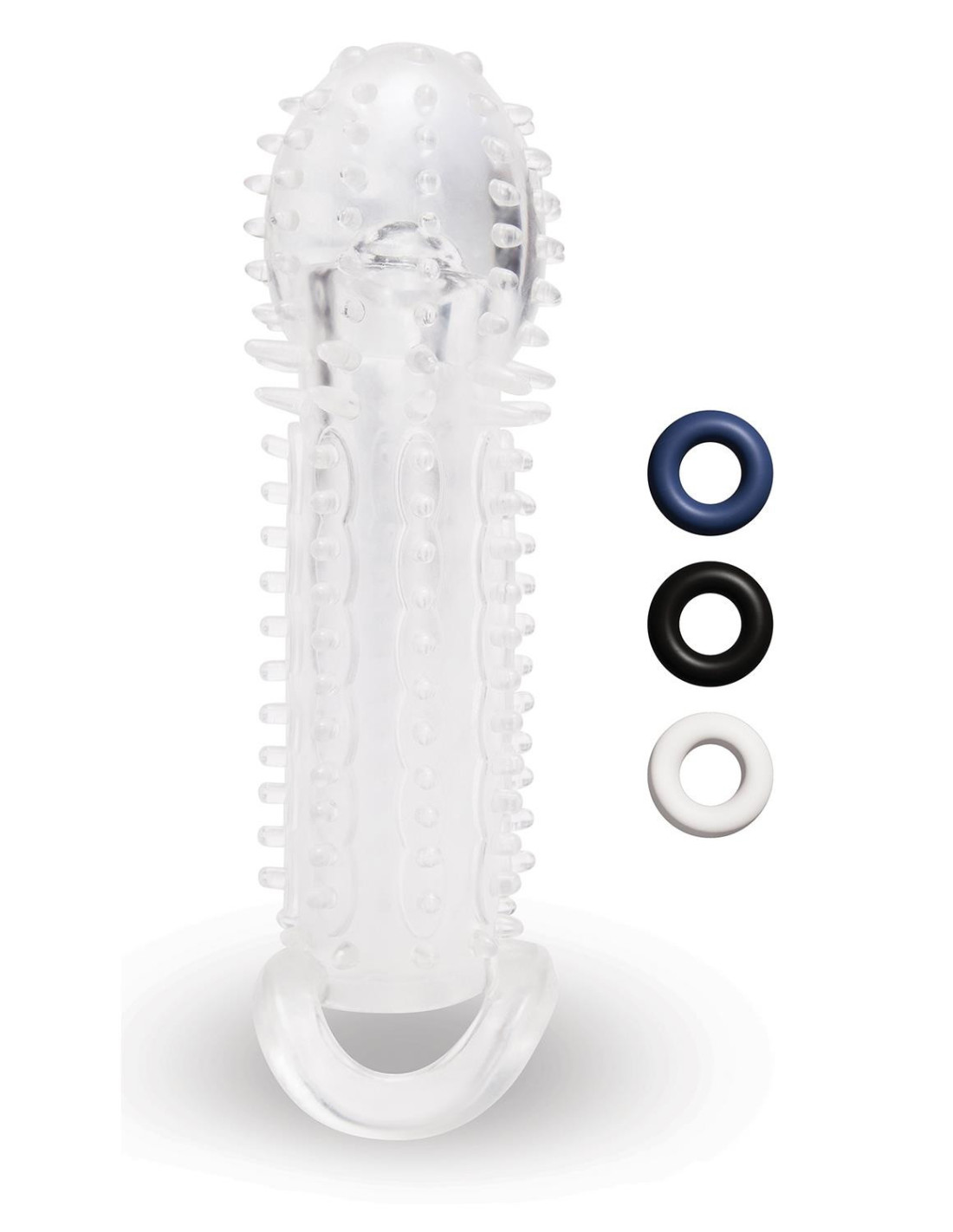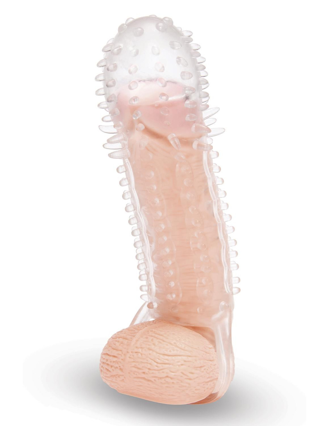 Add extra length and girth with the 3” See-Thru Penis Extender from Size Up. The realistic shape, details and textured surface create the ultimate experience in pleasure and play, giving you and your partner the experience of your life. The transparent design provides visual stimulation and the ball loop ensures firm control over your enhanced package. Use the three included rings to increase your stamina and enhance your pleasure.Textured pleasure nubs for enjoymentBall loop for extra security1.5” head for extra deep penetrationClear material for visual stimulationWaterproofMade from body-safe TPELength: 6.10 inch / 15,5 cmWidth: 2.40 inch / 6 cmHeight: 2.40 inch / 6 cmWeight: 0.22 lbs / 100 grIncluded:Penis Extender3 Stretchy Stamina Rings