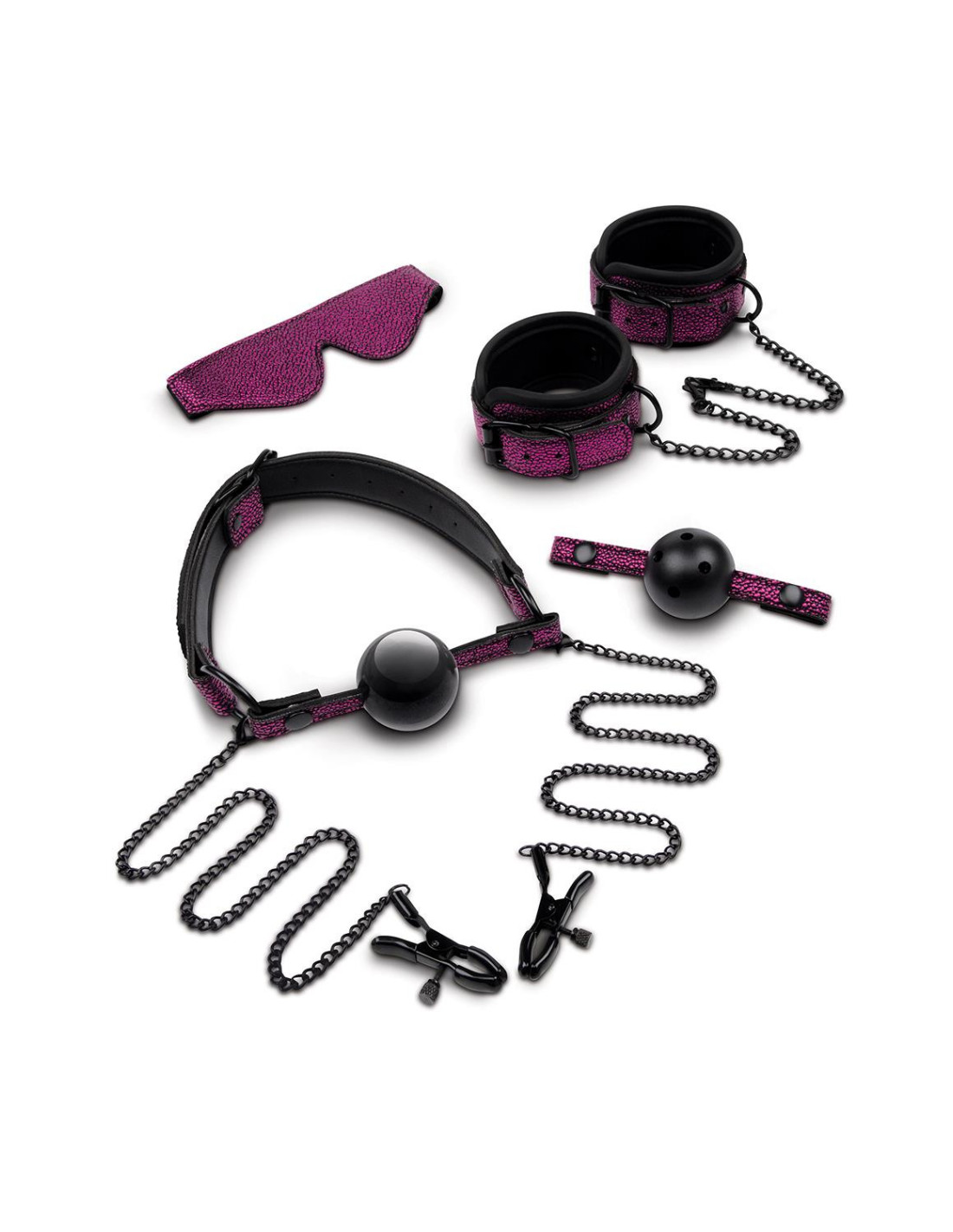 Explore the realms of dominance and submission with this Whipsmart 5 Piece Dragonskin bondage set. This kinky ensemble offers an immersive journey into sensual exploration and power dynamics. Prepare to be enthralled by the array of pleasures this set bestows upon you. Including an eye mask, wrist/ankle cuffs, ball gag, and nipple clamps, it sets the stage for your most captivating encounters. Experience the thrill of submission with our comprehensive bondage set. Featuring wrist and ankle cuffs, nipple clips, ball gag, and an eye mask, indulge in unforgettable restraint and sensory exploration.Length: 2.80 inch / 7,1 cmWidth: 6.00 inch / 15,2 cmHeight: 13.25 inch / 33,6 cmWeight: 1.12 lbs / 508 gr
