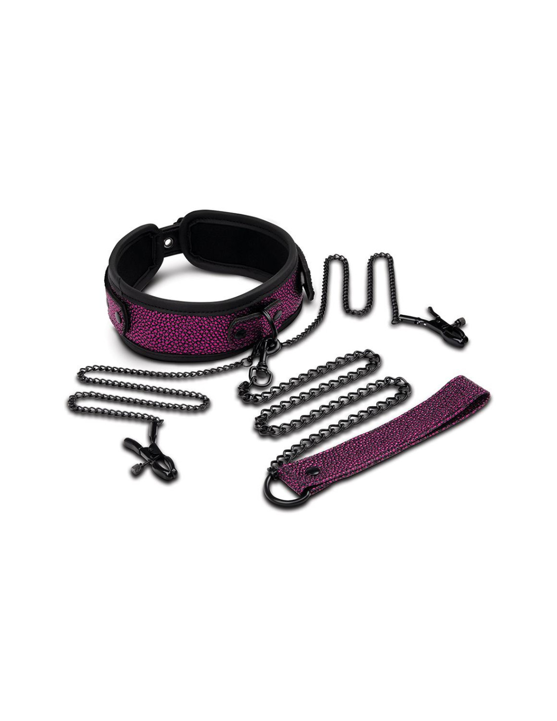 The Collar and Leash, featuring a dragon-inspired texture, creates an aura of dominance and submission. The attached nipple clips add an electrifying twist, heightening sensations as they squeeze to your delight. Elevate your BDSM encounters with this otherworldly ensemble that’s designed to awaken your deepest desires.Length: 2.10 inch / 5,3 cmWidth: 5.00 inch / 12,7 cmHeight: 9.62 inch / 24,4 cmWeight: 0.65 lbs / 294 gr