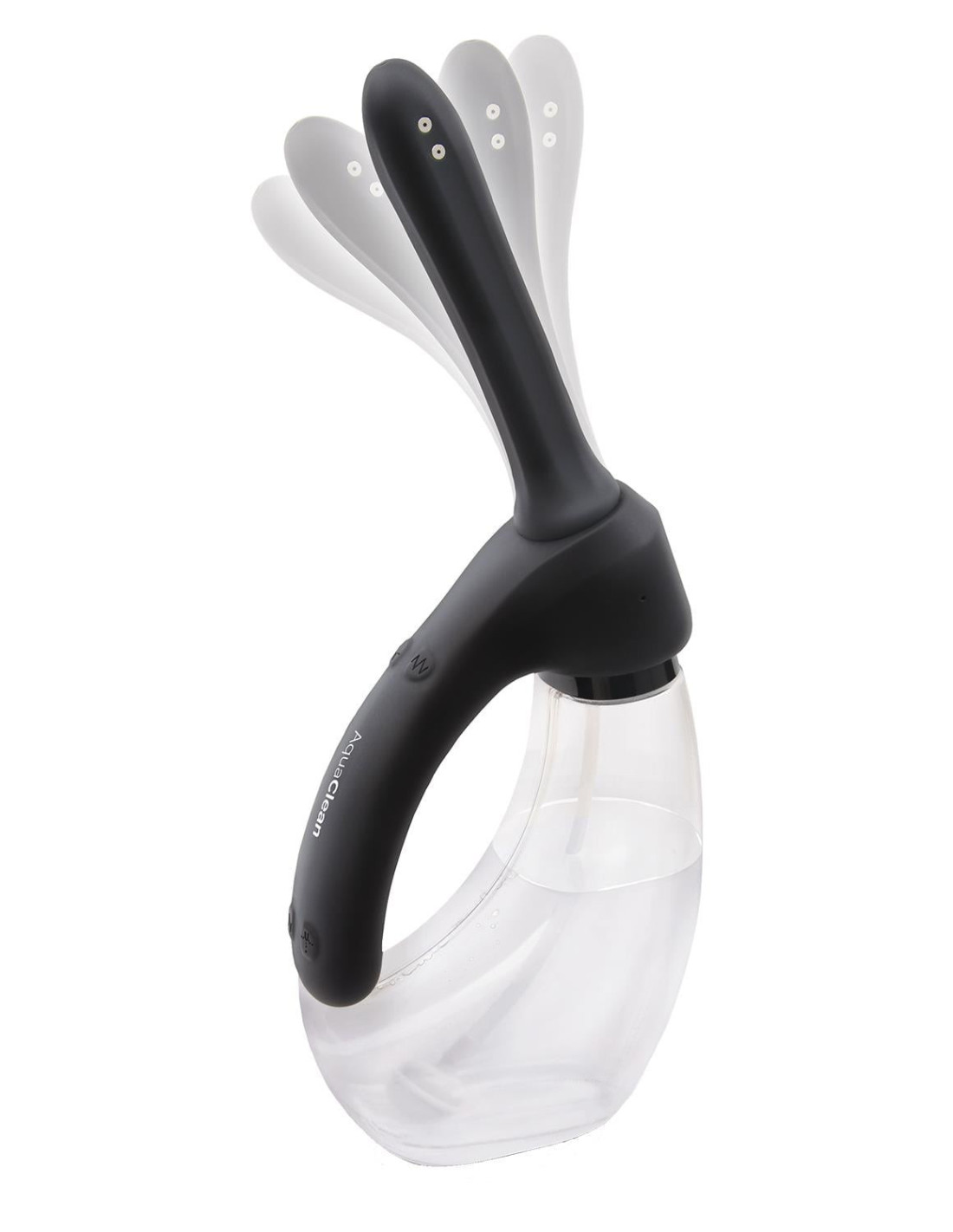 Experience superior intimate hygiene with this powered douche from AquaClean, featuring 10 vibration patterns, 3 adjustable spray strengths and USB magnetic charging. Elevate your freshness and comfort with powerful cleanliness at your fingertips. The douche water container holds up to 15 fluid ounces (440ml) and the handle has two sets of buttons for a more versatile grip. The set also includes a travel-friendly compact douche and storage bag for on-the-go clean.3 Spray Strengths10 Vibration PatternsMagnetic USB ChargingMade from hypoallergenic and body-safe materialsInstructions shown on outside of packagingLength x Width x Depth: 11.4” x 4.4” x 2.45” / 28,9 x 11,2 x 6,2 cmWeight: 0.54 lbs / 245 grMaterials: Silicone, ABS PlasticWhat's included:440ml ContainerBendable, Vibrating NozzleMagnetic USB Charging Cable150ml Travel BulbStorage and Drying Bag