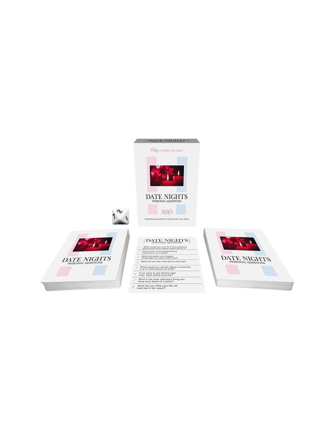 You and your date take turns rolling the die and asking each other personal questions from the game cards. If someone is uncomfortable answering a question, it is perfectly fine for a second question to be asked. The fun and intrigue of the questions allows you to have more interesting dates and to get to know the other person better. 500+ interesting questions to share with your date. All questions are gender neutral so ANY couple can play