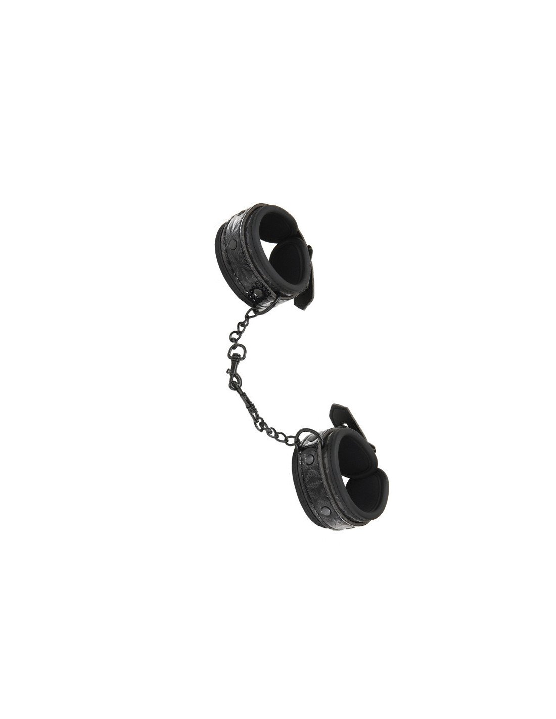 Sleek, sexy cuffs made for kinky bondage play can be used on the wrists or ankles to give you total control. Experience the pleasure of releasing control with a set of Universal Diamond Cuffs that can be used for binding wrists or ankles. These comfortable cuffs feel soft and comfortable against the skin while securely locking you in place. Connected by a chain with a clip, the cuffs can be attached to each other or to other chained bondage accessories.Fully adjustable for secure and comfortable restraint of wrists or anklesHole buckle closure adjusts from 14.5inch for perfect fitQuick-release chain connects each cuff for sturdy-yet-safe restraint