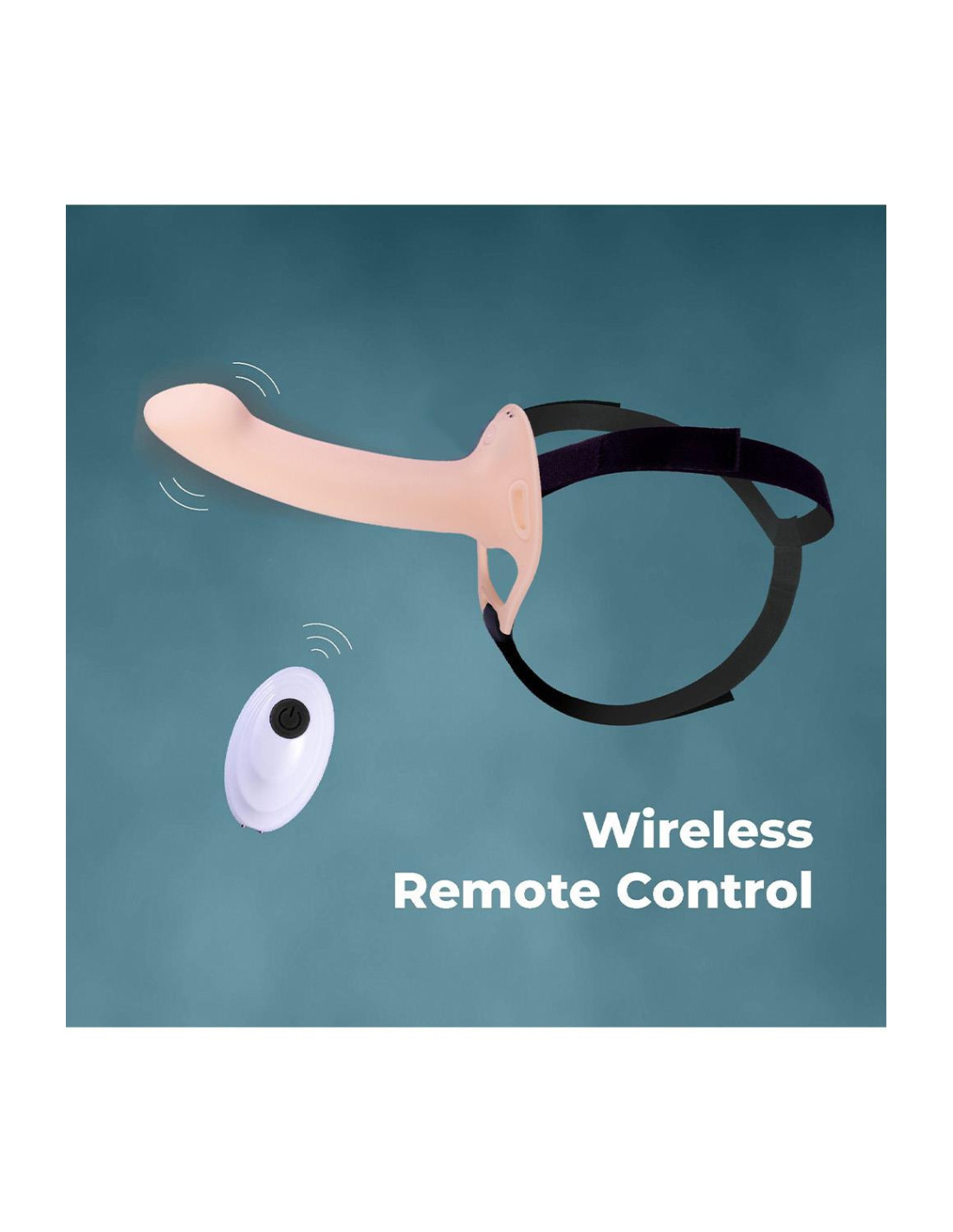 Hollow vibrating strap on with ball ring10 Dynamic rhythmsWith wireless remote controlIncredible stimulationFully adjustable harness with velcroMade of hygienic silicone, ABS and polyesterRechargeableHygienic siliconeMagnetic rechargingLength 9.5 inch / 24,1 cm