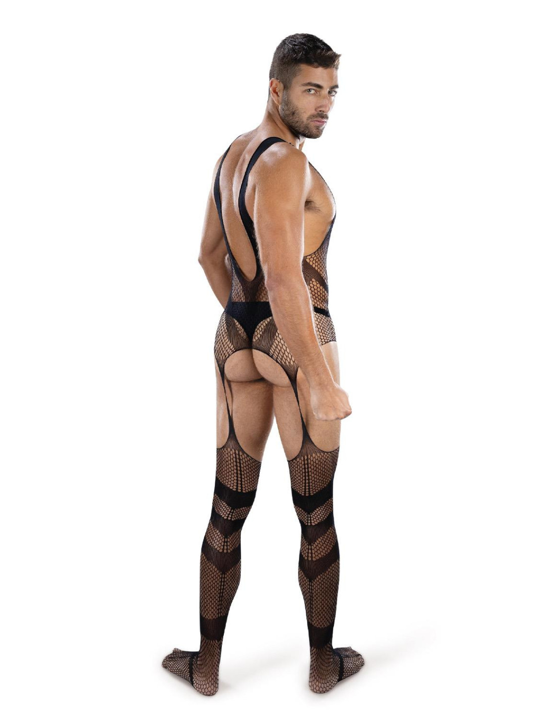 Step into unparalleled daring with the Fishnet Open-crotch Bodystocking. This ultimate piece for provocative play is constructed from a sheer, multi-textured fishnet mesh that completely cloaks your physique in a mesmerizing web. The design features a bold keyhole opening at the chest and integrated, high-thigh garter-style straps that lead into a striking pattern of solid and mesh stripes down the legs, creating a powerful, athletic, and intensely detailed look. Its strategic and thrilling open-crotch design ensures maximum accessibility and heat, while the full-body coverage maintains an intense, dramatic silhouette, making it the perfect foundation for a night of unforgettable desire.Packaging: Box w/ Hang TabMaterials: 92% Nylon, 8% Spandex
