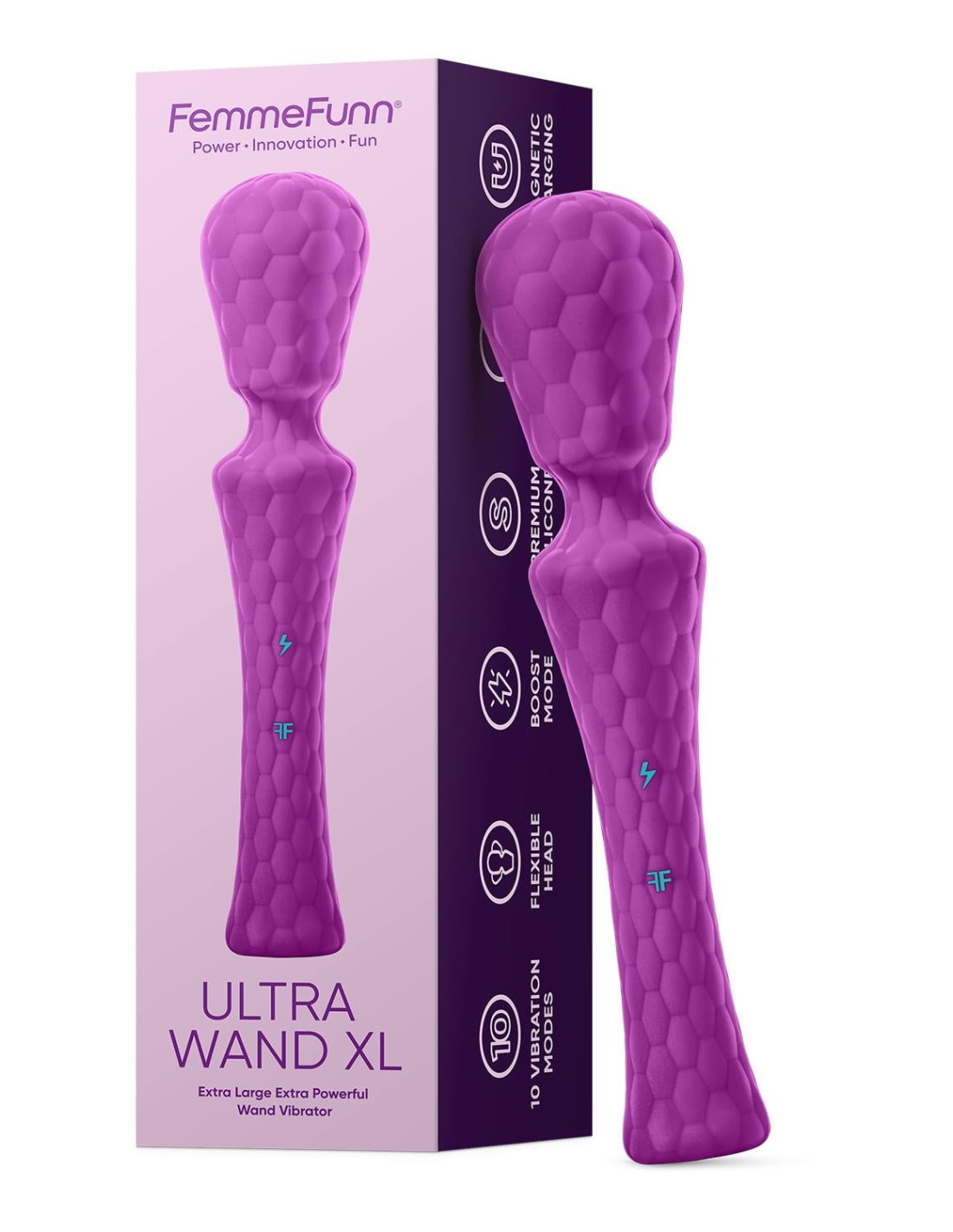 Extra Large Personal Massager Wand VibratorFor anyone who feels that bigger is better. Ultra Wand XL brings extra power to your pursuits of pleasure along with your pick of vibration modes, a flexible head, ergonomic handle for comfort, and an orgasmic boost function with the press of a button.Size matters. The proprietary motor takes every sensation to another level, with 10 vibration speeds and patterns. When you’re ready for more, use the boost function and enjoy an explosive finish.Made from our exclusive SOFTFEEL™ silicone, this 100% waterproof personal massager wand features a silky smooth feel and hexagonal texture that delights every spot it touches plus magnetic USB charging for easy power.Whether you want steady vibrations, patterns that keep you guessing, or the concentrated thrill of our boost mode, this extra large powerhouse delivers. Warning: You’ll want to come back for more.Length: 11.4 inches / 29 cmWidth (Head): 2.45 inches / 6,2 cmWidth (Base): 1.75 inches / 4,4 cm10 Vibration modesBoost function100% WaterproofMaterial: Premium SiliconeBattery: Li-ionCharging Voltage: 5VRun Time: Approx. 100 Minutes at Highest Setting*Charge Time: Approx. 1 Hour**Charging and use times are estimates only. Battery life varies over time, and all batteries experience a decline in useful life over time.