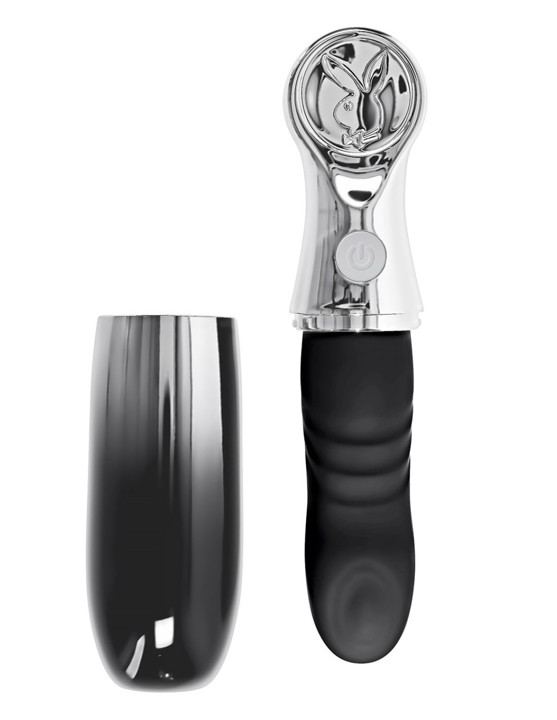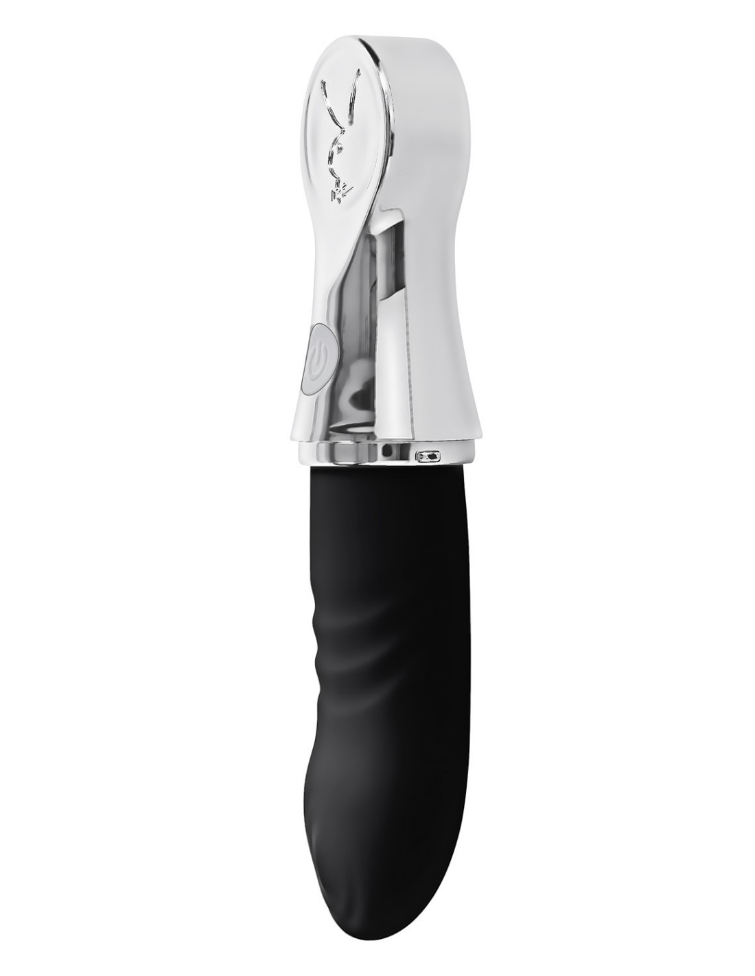 Bon Voyage! We’ve got your travel adventures covered with this powerful tapping toy you can pop into any purse, bag or carry-on luggage for pleasure on the go! The chunky shaft is ribbed for extra sensation and comes to a head with 7 speeds and rhythms of tapping in the beautifully angled tip. With its ombre chrome carrier that twists into place right underneath the ergonomic Playboy rabbit head, your toy is fully protected until you pull it out for play time whenever you like. Heading to the hot tub? Bon Voyage can join your water games as it’s completely submersible!Powerful tapping at head, Rabbit head travel caseTapping: 7 tapping speeds & rhythmsMaterial: Body-safe Phthalate & Latex free SiliconeWaterproof & Submersible IPX-7Rechargeable: USB-C cable includedHeight: 7.37 inch / 18,7 cmDepth: 1.77 inch / 4,5 cmWidth: 1.77 inch / 4,5 cmInsertable Length: 3.75 inch / 9,5 cmDiameter: 1.26 inch / 3,2 cm