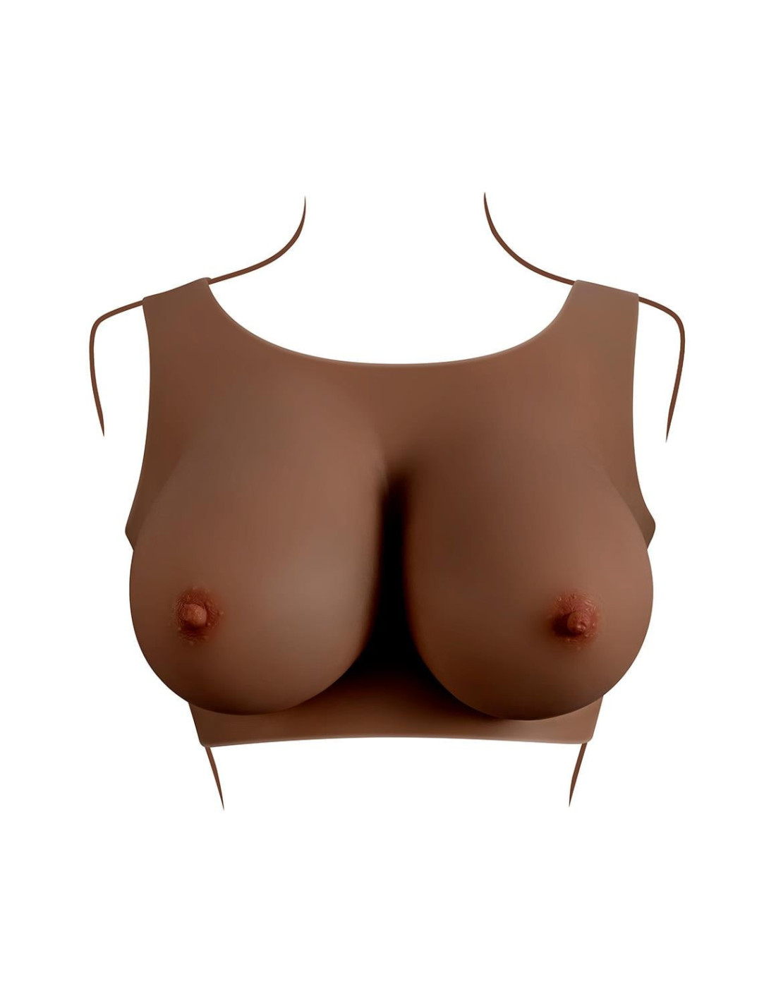 Lifelike and realistic, these wearable breasts are soft and yielding to the touch, designed with a natural shape and sway that looks great under clothing. The easy-to-put-on vest design makes these E-cup enhancements super comfortable for a confident experience.Made from phthalate & latex-free siliconeVest stretches to fit mostDesigned for people 5’4 foot – 6 foot / 1.65 m - 1.83 m tallShoulder width: 13.4 inch / 34 cmArm girth: 32.3 inch / 83 cmUpper chest circumference: 37 inch / 94 cmLower chest circumference: 30.7 inch / 78 cmFull length: 11.8 inch / 30 cmVibrating finger ring included