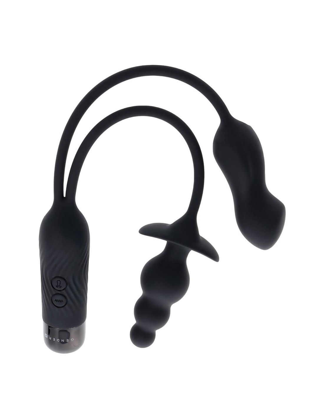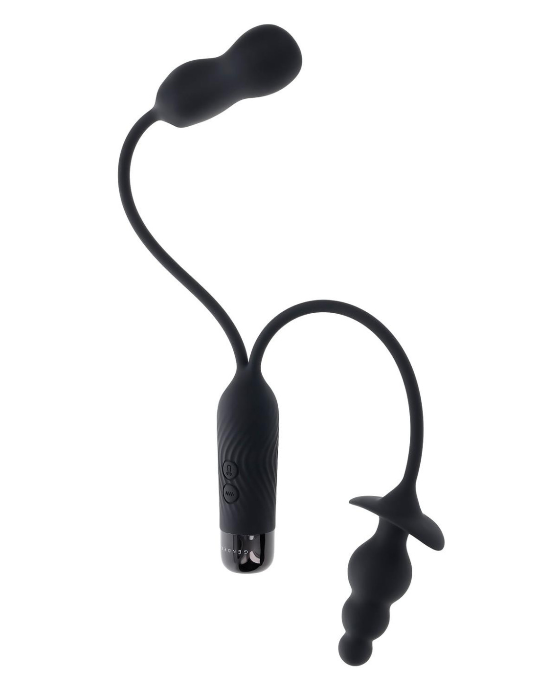 This double-motor toy features two vibrating shapes – a beaded plug and a mini-vibe each tethered by a flexible cord. The round-tip plug consists of 3 bulbs that gradually increase in size to a wide safety base. The chunky-shaped mini-vibe narrows at the center and finishes with a flattened, blunt tip. A USB plug is neatly stored under the textured handle’s screw-off cap. 2 motors controlled separately8 vibrating speeds & functionsMade from phthalate & latex free silicone & ABSWaterproof & submersibleUSB rechargeableVibe end Insertable length 3.25 inch / 8,3 cm, Insertable diameter 1.32 inch / 3,4 cmPlug end Insertable length 3.12 inch / 7,9 cm, Insertable diameter 1.30 inch / 3,3 cm